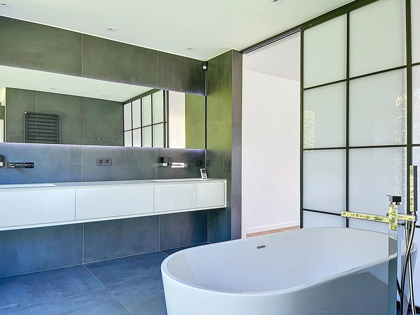 Dit moderne en zeer esthetische geheel wordt aangevuld met een warmtepompverwarming, zonnepanelen, meerdere buitenparkeerplaatsen, een poort met digicode, een geavanceerd alarmsysteem... Het onderhoud van de tuin en de warmtepompen is inbegrepen in de huurprijs.