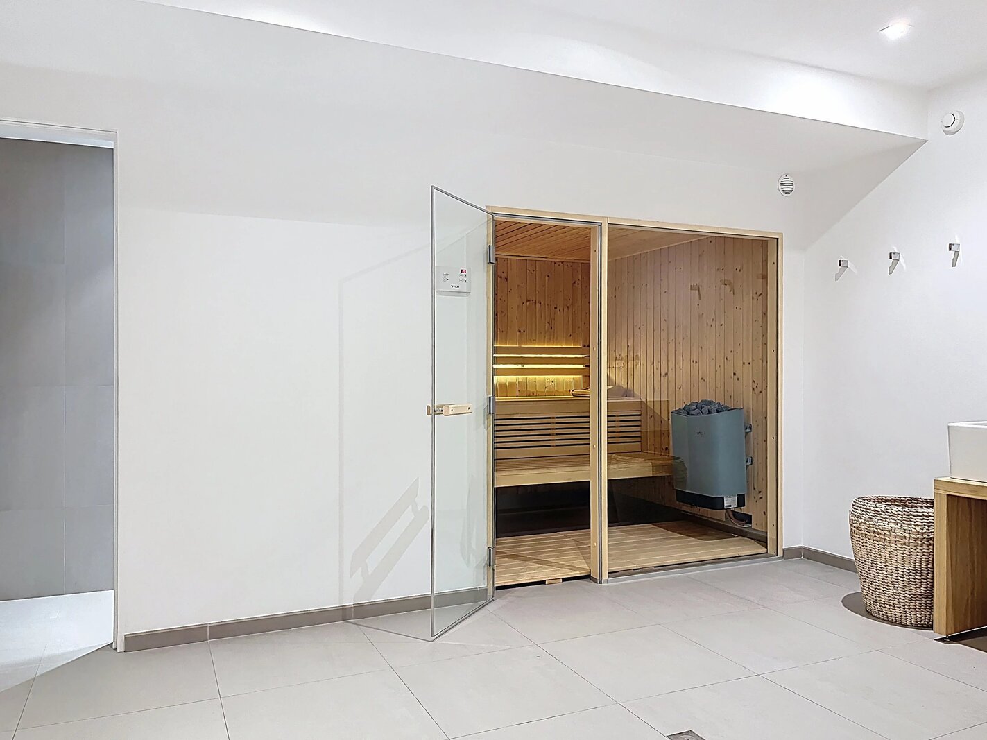 In de kelder bevindt zich een vijfde slaapkamer, een speelkamer, een wasruimte, een bioscoopzaal, een kelder, een gekoelde wijnkelder, een sauna en een garage voor 3 auto’s met afstandsbediening.