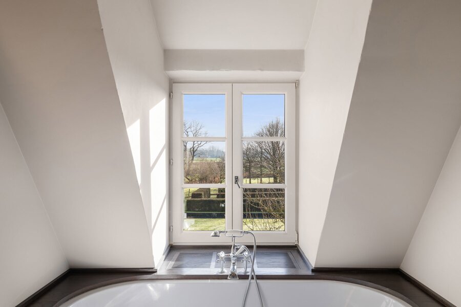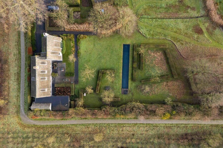 Op een verscholen ligging in de bossen van Hertsberge, waar u geniet van adembenemende vergezichten in een warme en geborgen discretie ligt dit in 2004 heropgebouwd landhuis. Waar vroeger het ' jachthuis van Hertsberge' stond vinden we nu een thuis waar tijdloze charme en stille luxe de rode draad vormen.
