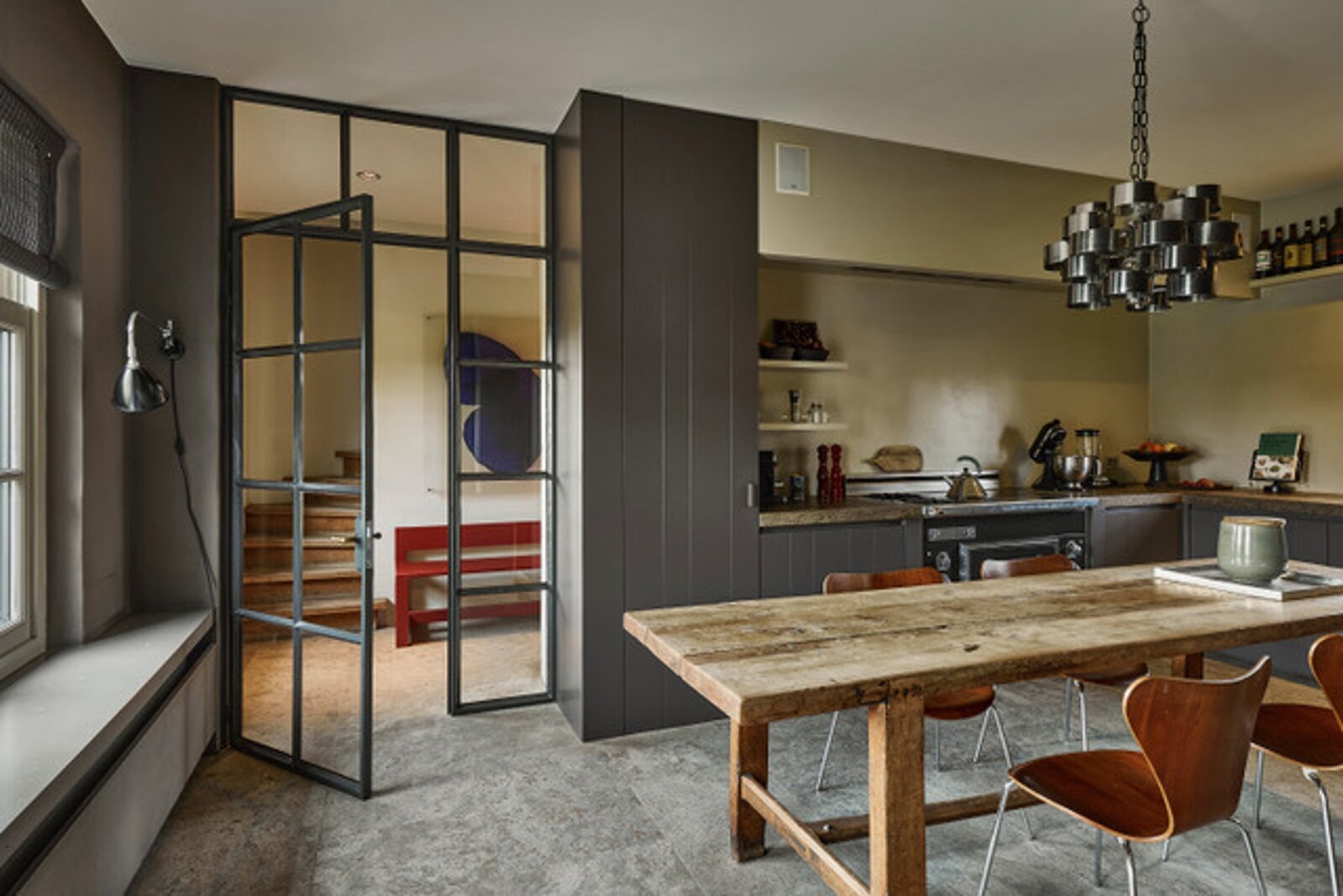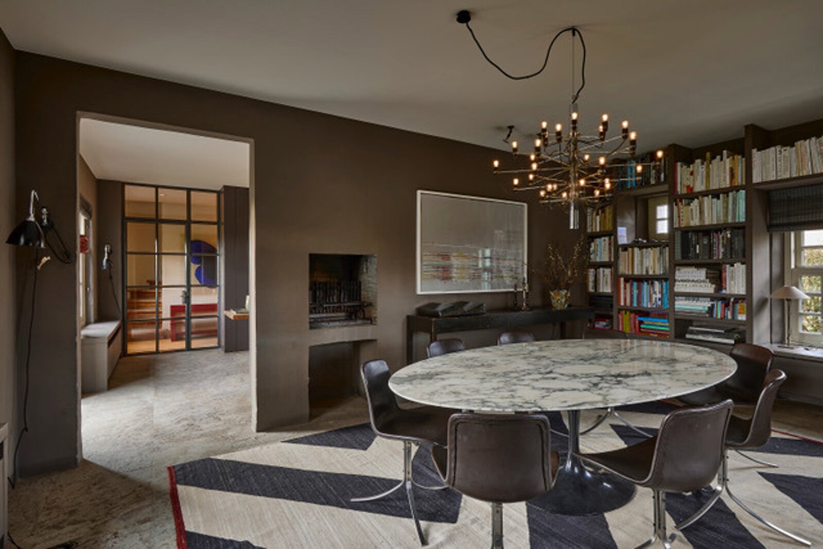 Het gelijkvloers kenmerkt zich door afzonderlijke maar toch aan elkaar verbonden ruimtes. Een eetplaats waar een open haard met grill in de muur verwerkt zit, een gezellige woonkamer die baadt in het daglicht en toch geniet van de rustieke warmte door een tweede open haard en de ruime leefkeuken.