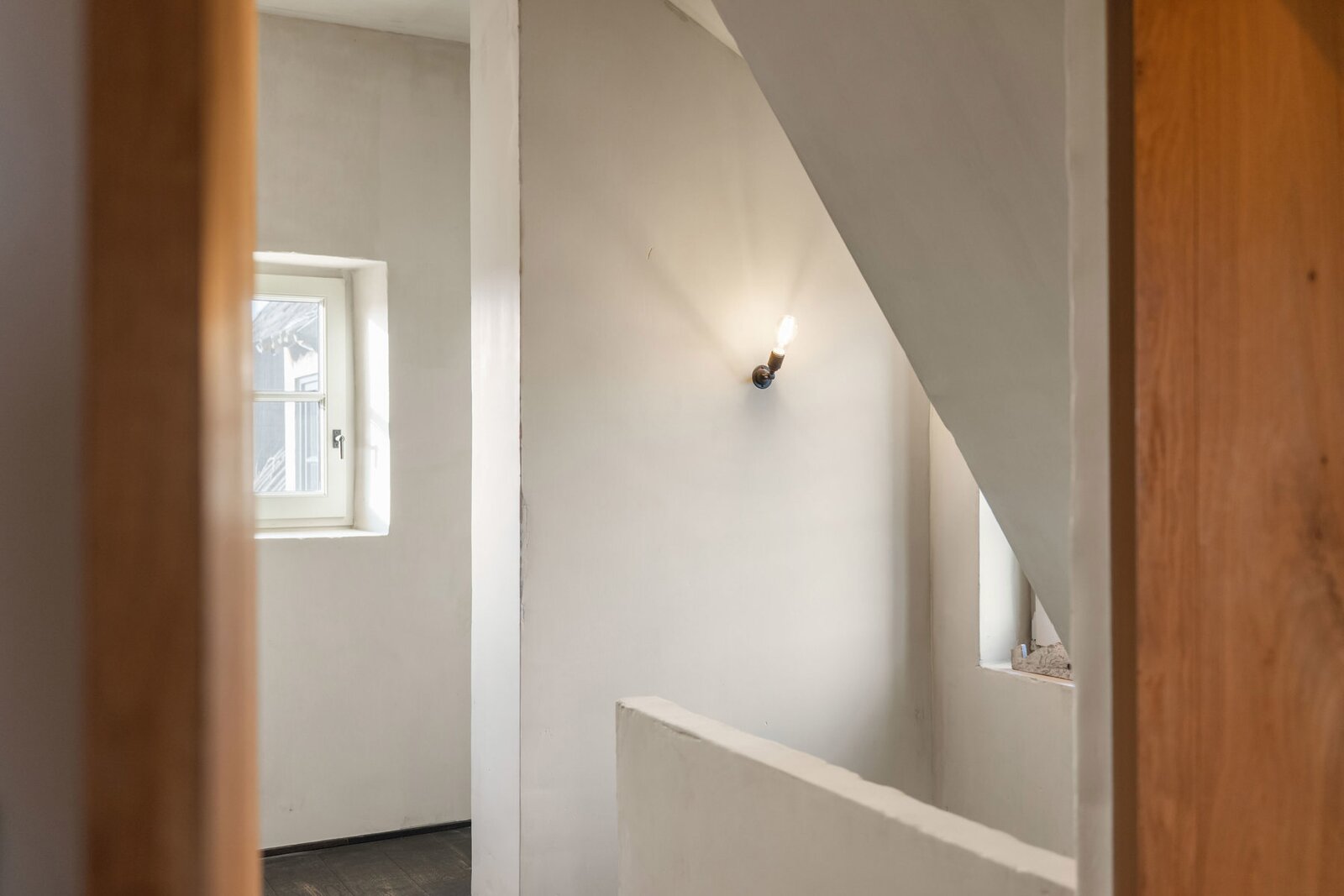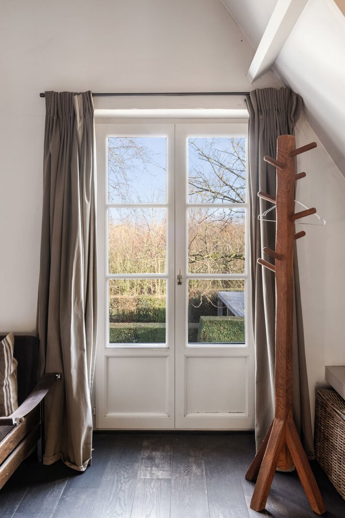 Het verdiep volgt de contouren van het gelijkvloers en bestaat uit 3 slaapkamers (waarvan 1 momenteel dienst doet als bureau), een dressing en 2 badkamers. Vanuit deze ruimtes geniet u telkens weer van een verrassend en rustgevend uitzicht.