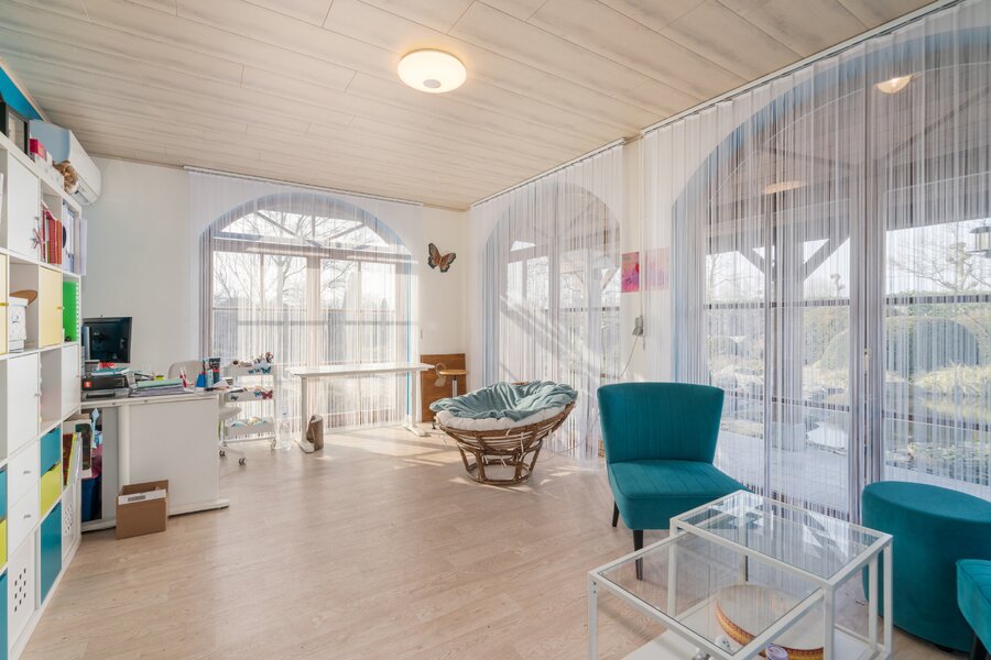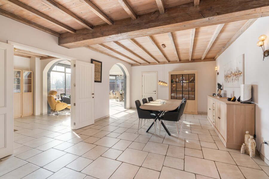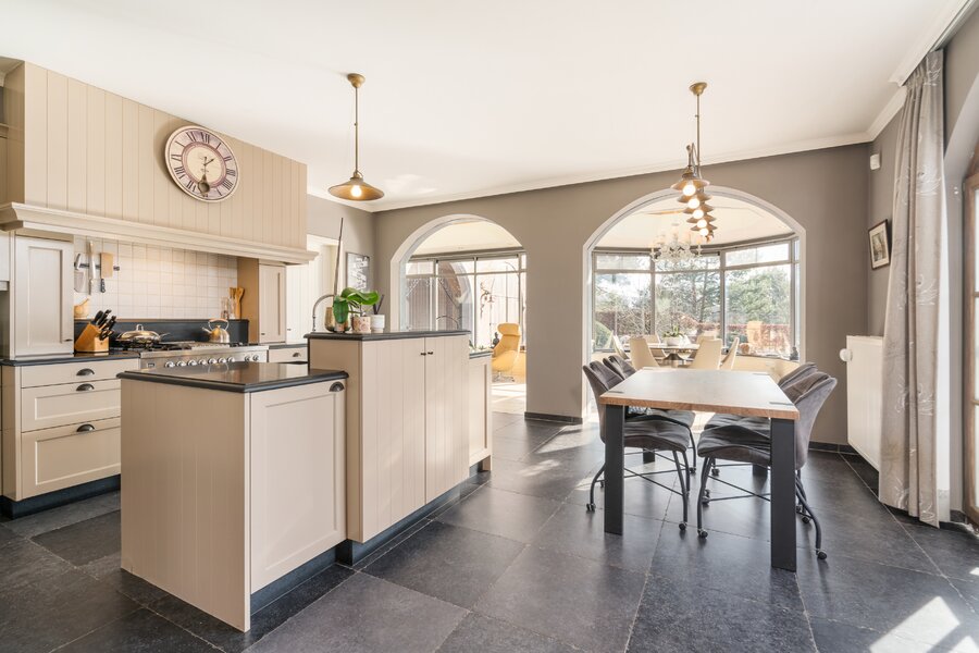 Via de riante inkomhal komt u terecht in de leefruimte, die overgoten wordt met licht. Aansluitend bevindt zich de veranda met grote raampartijen. De keuken, ook wel het kloppend hart van de woning, is uitgerust met kwalitatieve toestellen. Zo zullen kookliefhebbers het gasfornuis van het merk Boretti ongetwijfeld weten te waarderen.