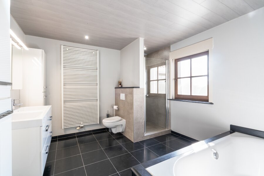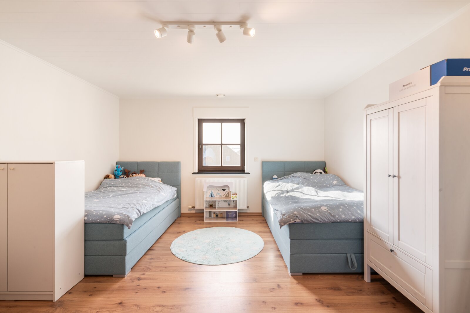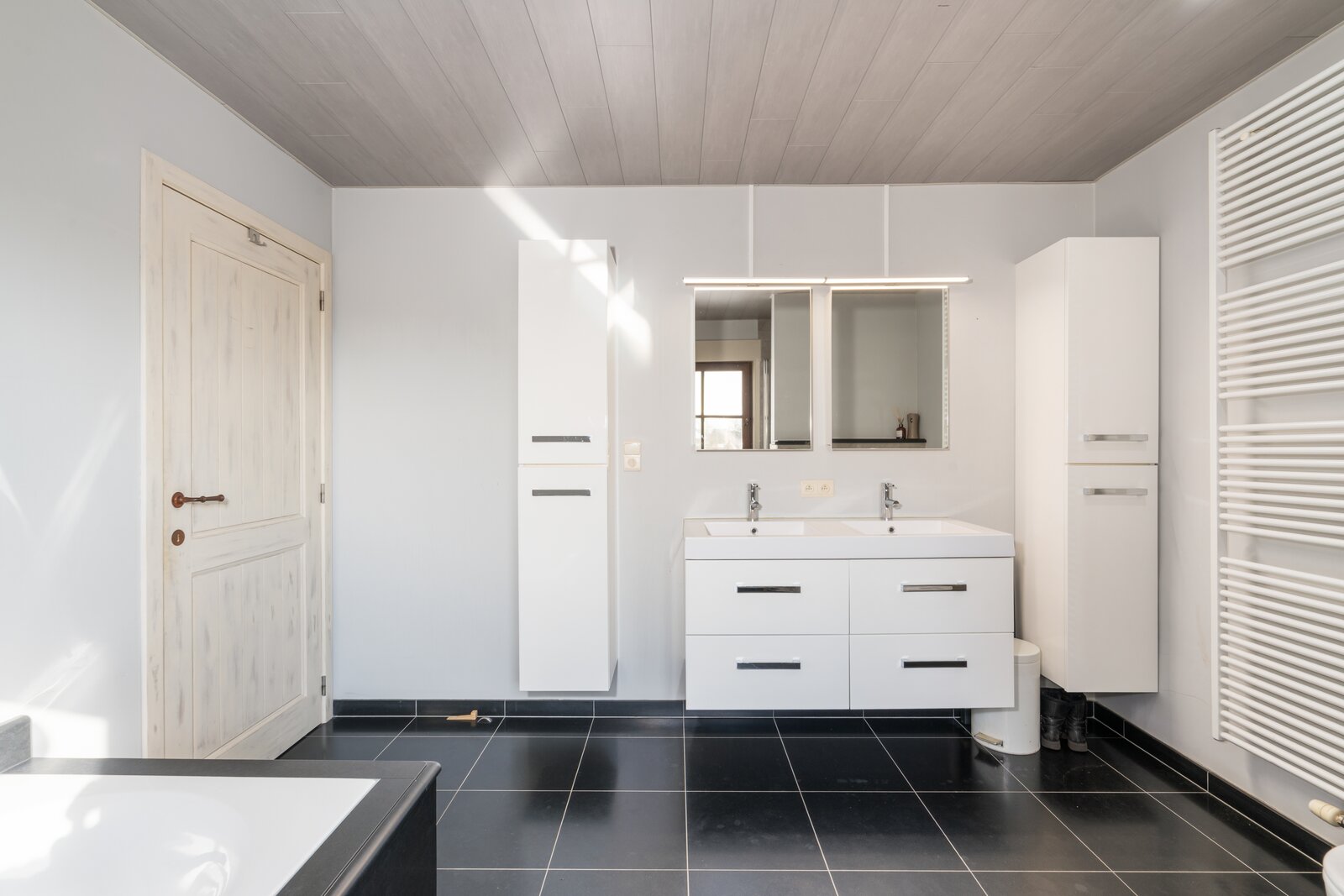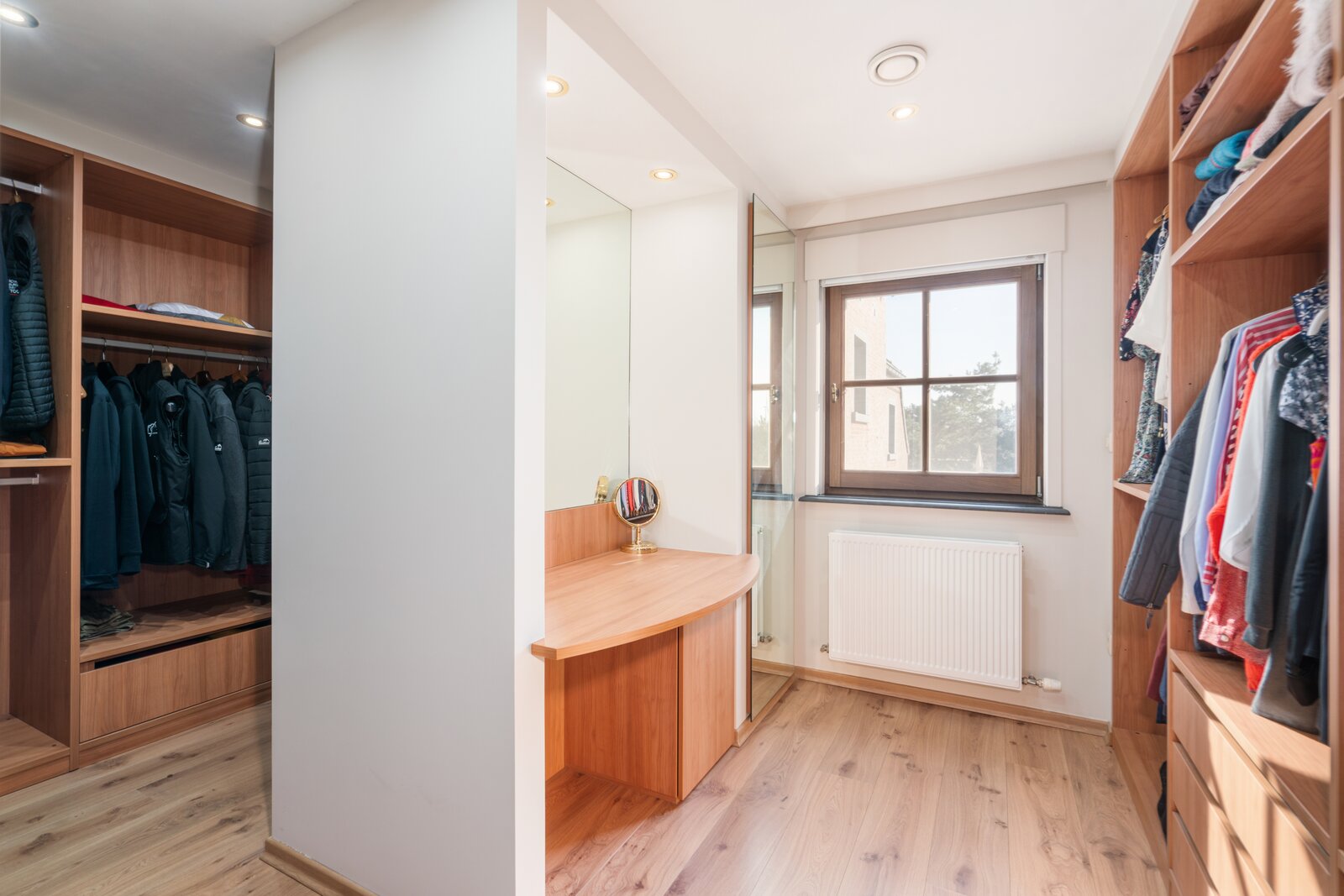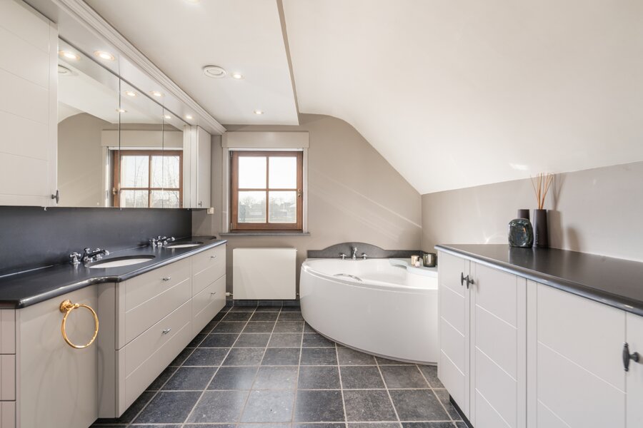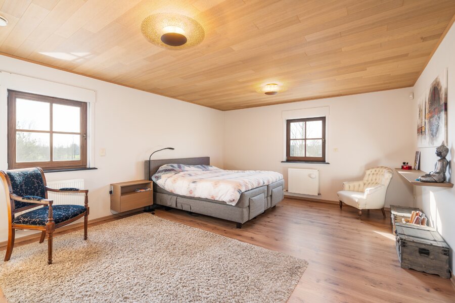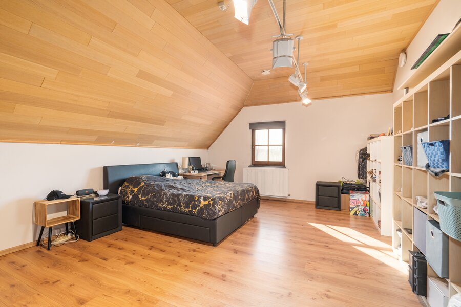 Deze woning telt naast de grote leefruimtes op het gelijkvloers maar liefst vier ruime slaapkamers, drie badkamers, een dressing, extra bergruimte en een zeer grote kelder. Daarnaast is er een bijgebouw aanwezig. Tot slot zorgen de twee garages ervoor dat ook de wagens steeds veilig binnen kunnen staan.