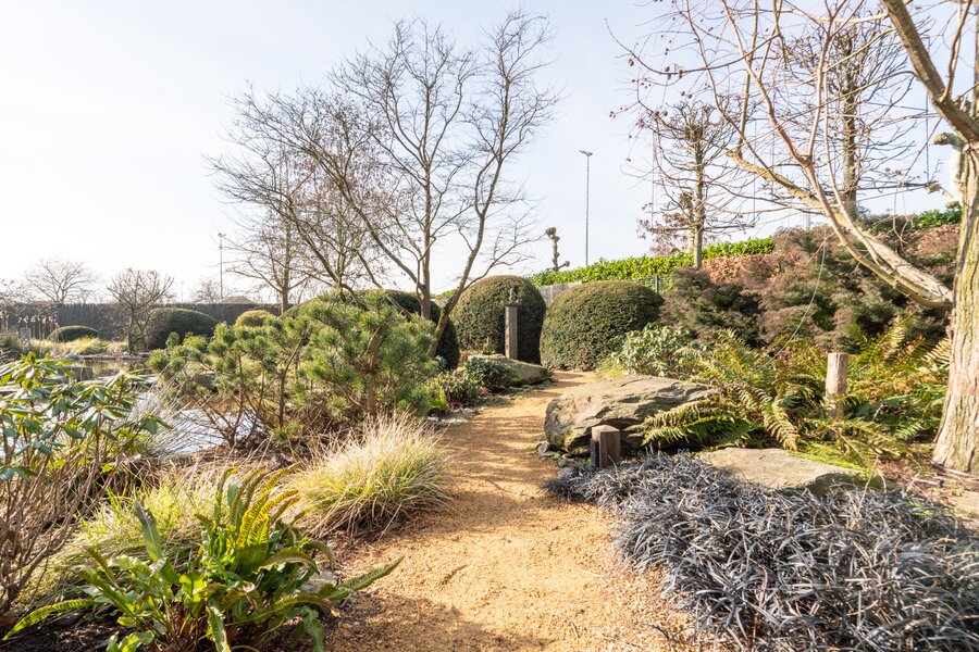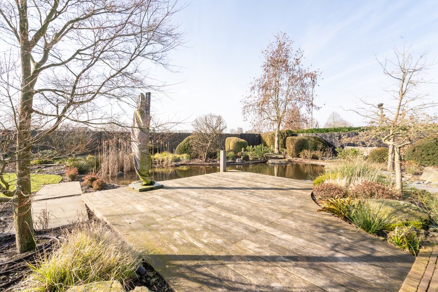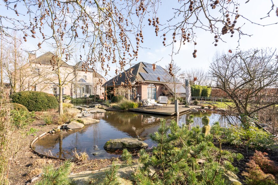 De tuin is volledig omheind en werd recent opnieuw aangelegd, inclusief een mooie vijver. Door de zuidwestgerichte oriëntatie geniet u niet enkel binnen, maar ook buiten van deze prachtige groene locatie.