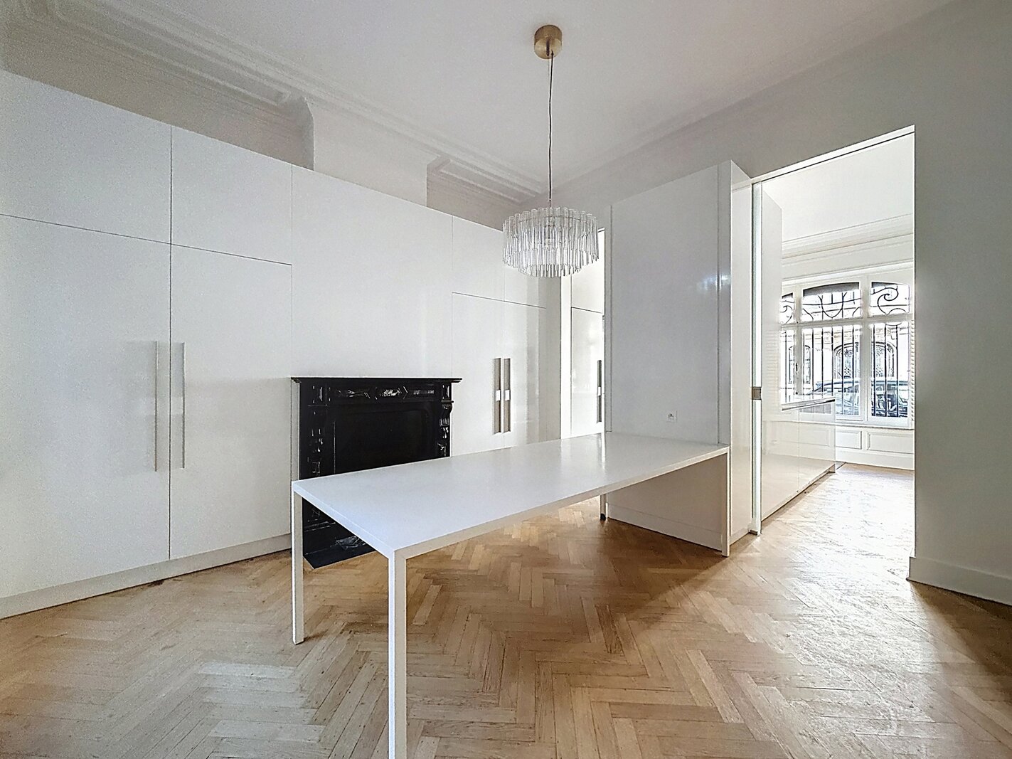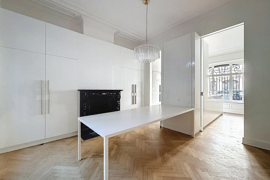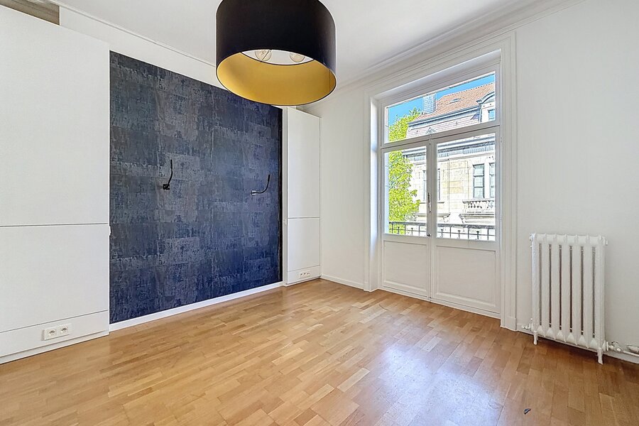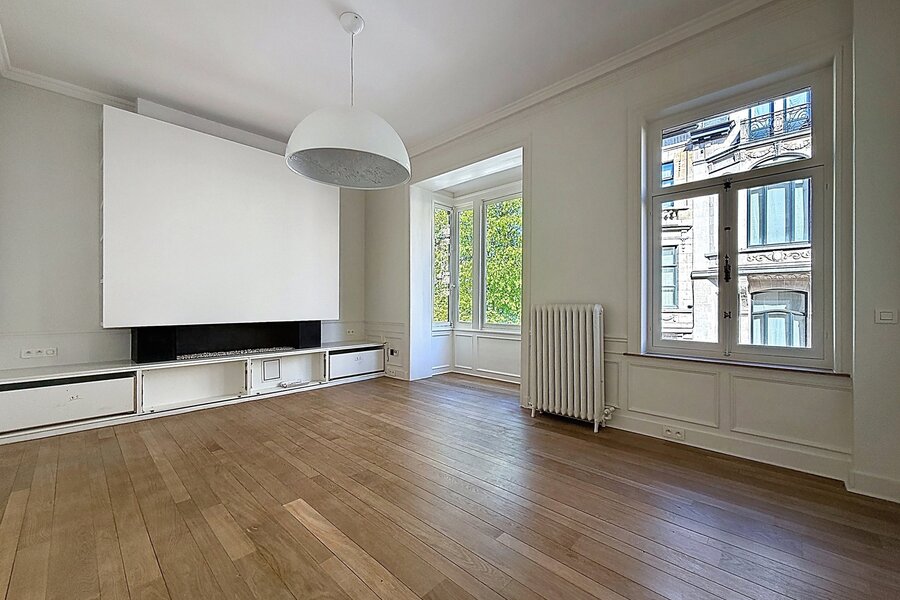 Tussen de wijk Châtelain en de Avenue Louise ligt een prachtig, volledig gerenoveerd historisch pand met een totale woonoppervlakte van circa 256 m². Het bestaat uit een hal met toilet, een ruime en lichte woonkamer (circa 40 m²), een volledig uitgeruste keuken (circa 15 m²), een eetkamer (circa 15 m²), vier mooie slaapkamers (circa 20 m², 20 m², 13 m² en 10 m²), een badkamer, een doucheruimte, een multifunctionele ruimte en een wasruimte. Een fraai terras (circa 15 m²) en kelders completeren het geheel. Het huis beschikt over hoge plafonds met sierlijsten en een open haard. Alle nutsvoorzieningen worden individueel gemeten. Energielabel (EPC) E+, nieuw EPC in aanvraag. Exclusief beschikbaar via Vaneau Lecobel!