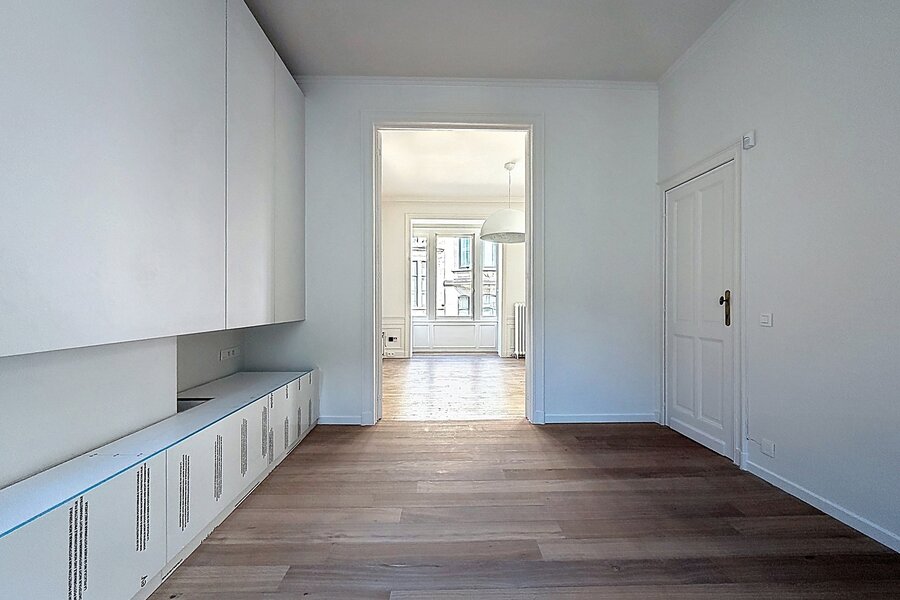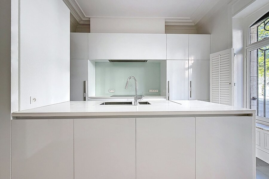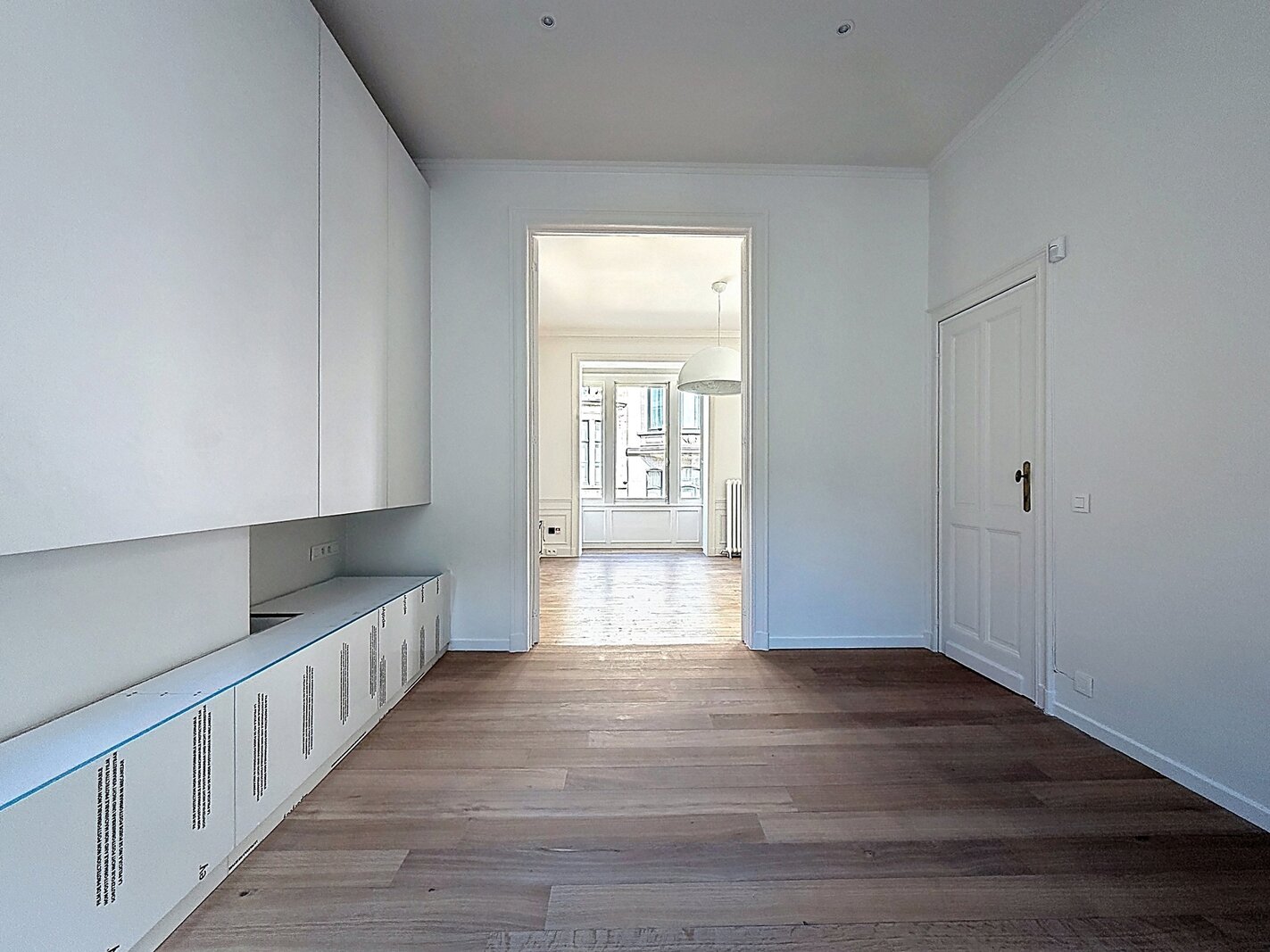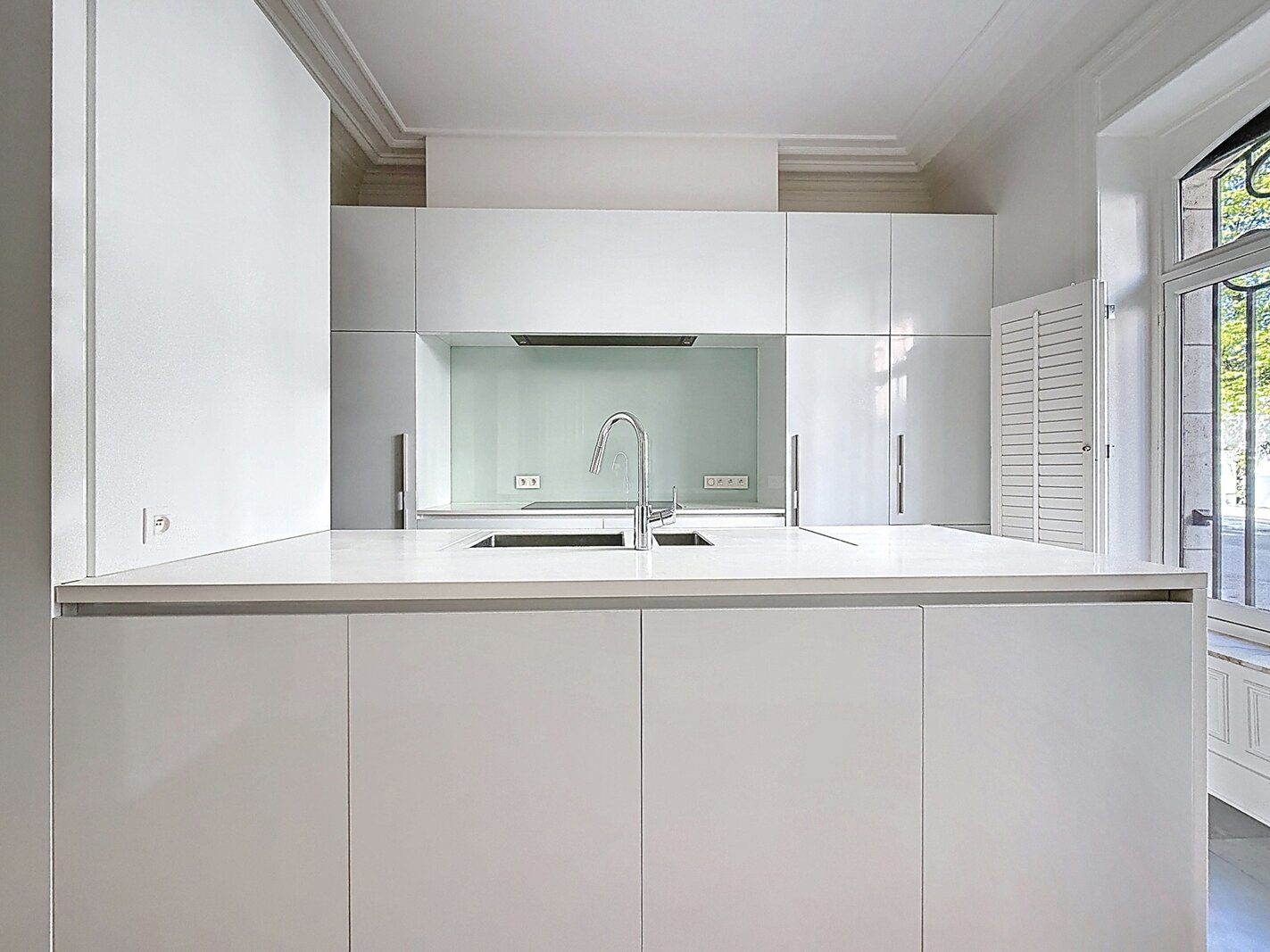 Tussen de wijk Châtelain en de Avenue Louise ligt een prachtig, volledig gerenoveerd historisch pand met een totale woonoppervlakte van circa 256 m². Het bestaat uit een hal met toilet, een ruime en lichte woonkamer (circa 40 m²), een volledig uitgeruste keuken (circa 15 m²), een eetkamer (circa 15 m²), vier mooie slaapkamers (circa 20 m², 20 m², 13 m² en 10 m²), een badkamer, een doucheruimte, een multifunctionele ruimte en een wasruimte. Een fraai terras (circa 15 m²) en kelders completeren het geheel. Het huis beschikt over hoge plafonds met sierlijsten en een open haard. Alle nutsvoorzieningen worden individueel gemeten. Energielabel (EPC) E+, nieuw EPC in aanvraag. Exclusief beschikbaar via Vaneau Lecobel!