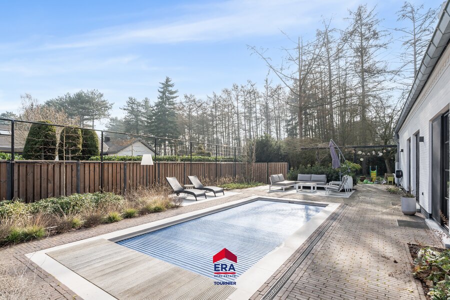 • Deels aangelegde tuin met verwarmd zwembad, enkele zonnige terrassen