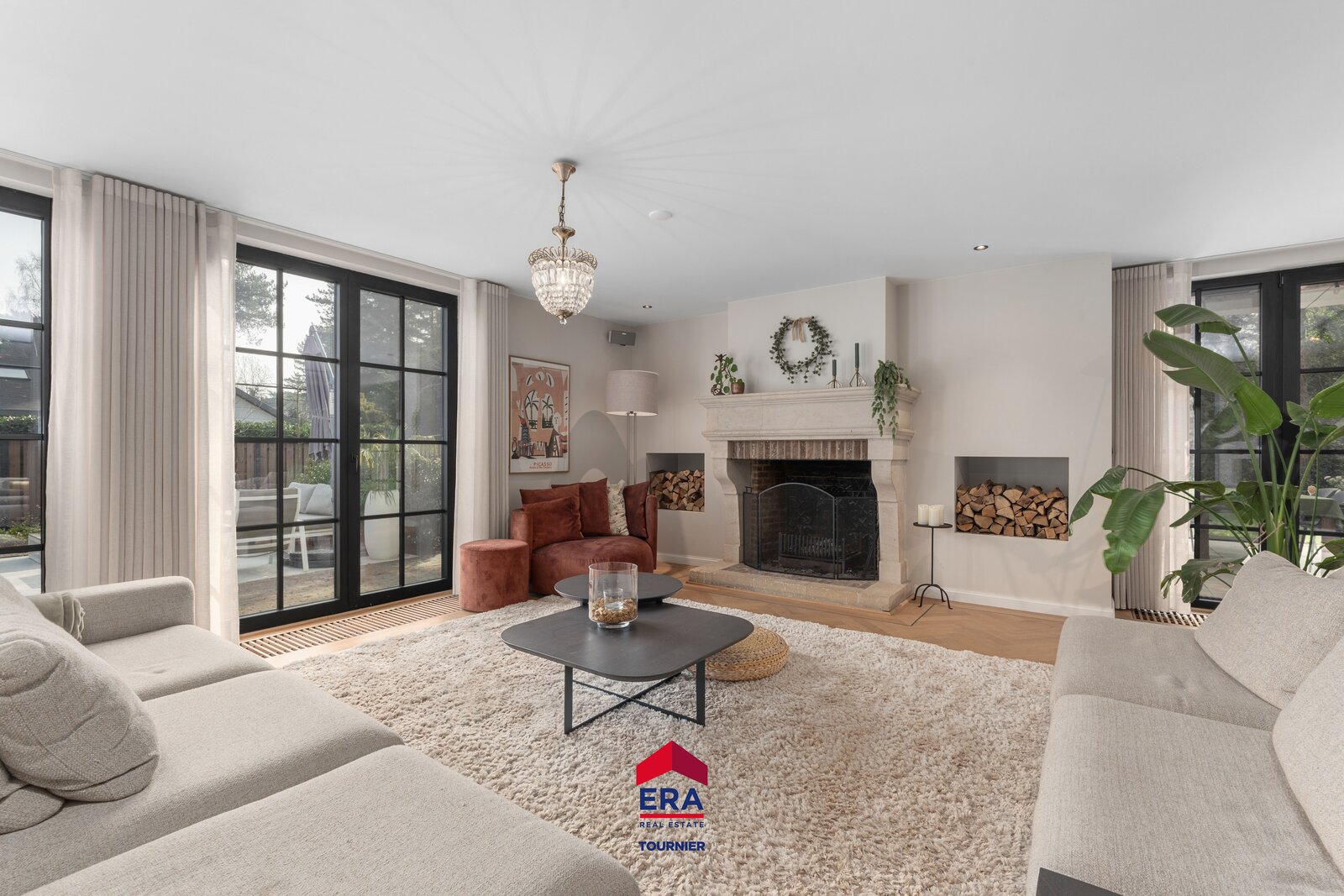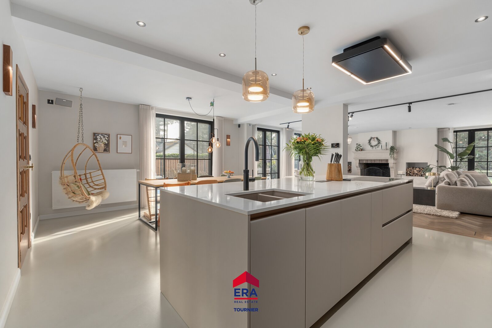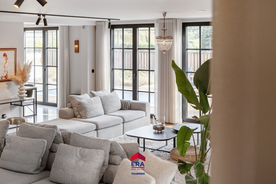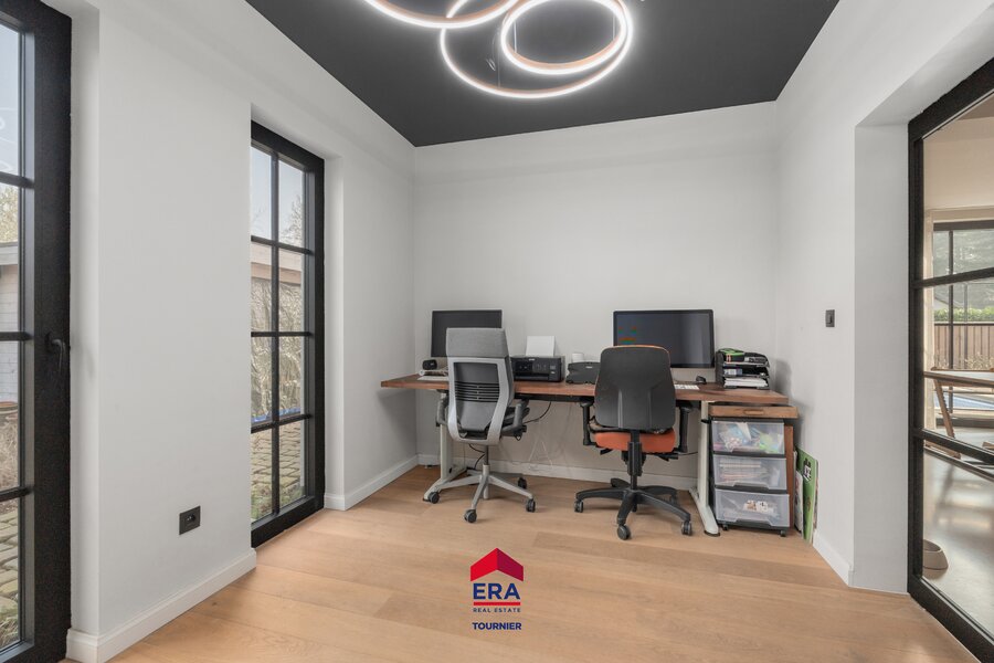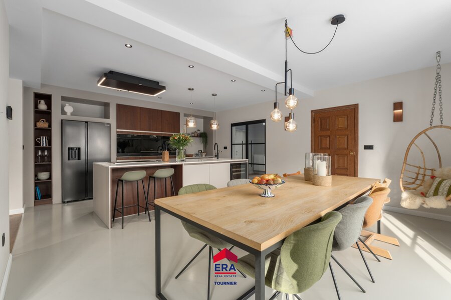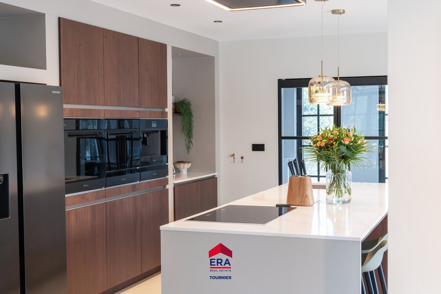 Vanuit de woonkamer en keuken is er een prachtig zicht over de tuin rondom. Gezellige open haard in de woonkamer met naastgelegen speelkamer en hypermodern ingerichte keuken.