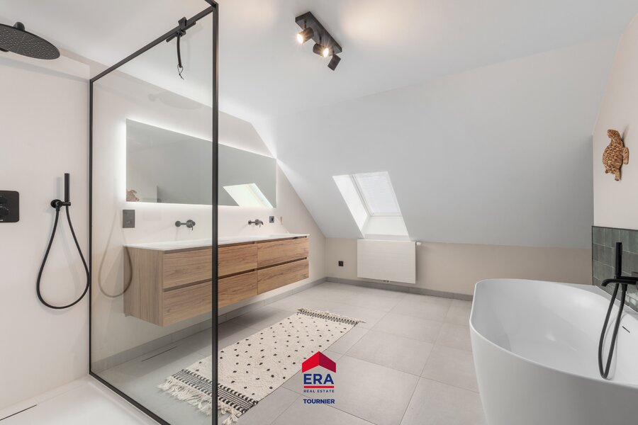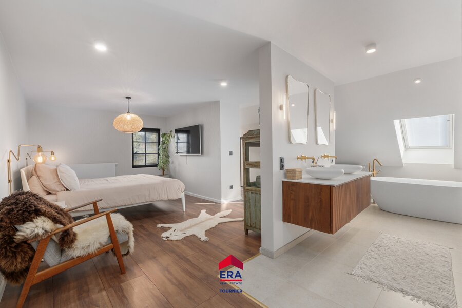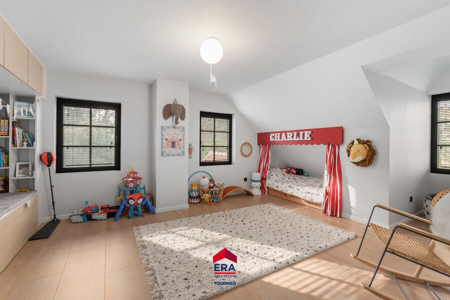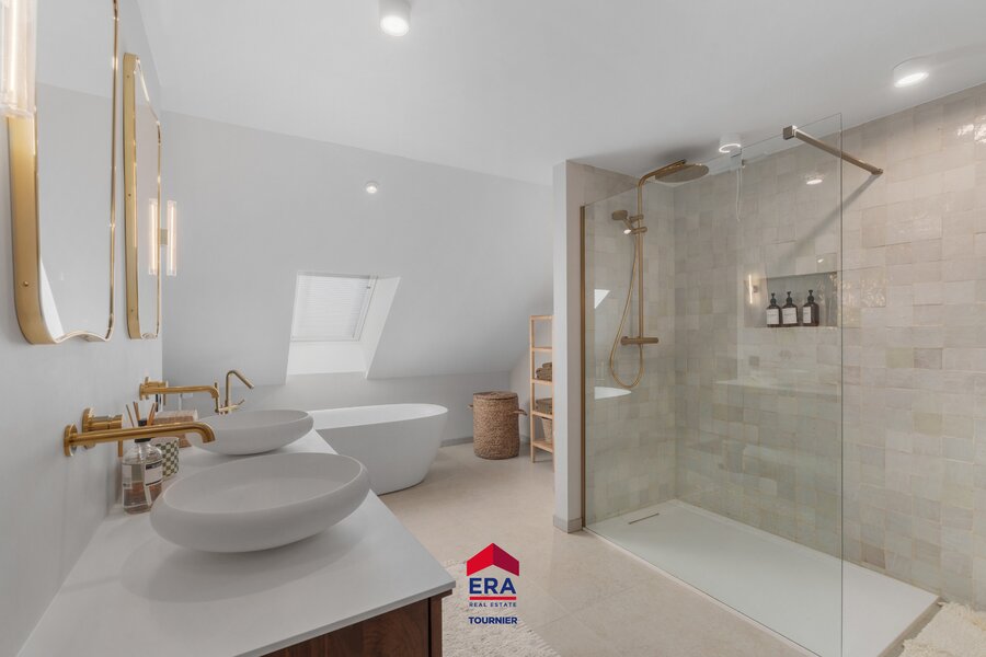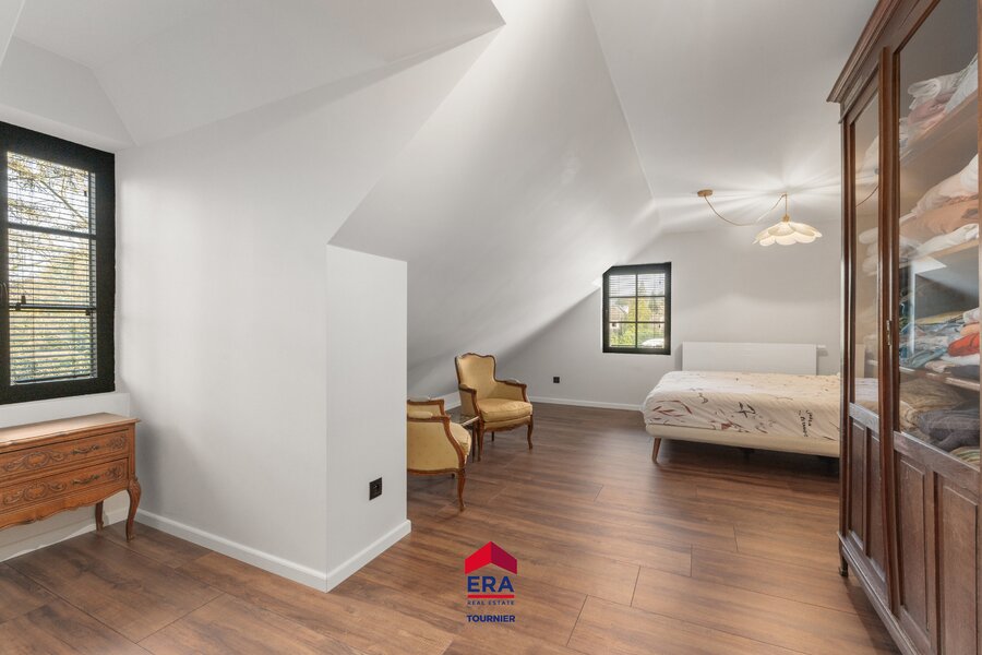 Masterbedroom met ensuite badkamer en dressing, 2 kinderslaapkamers met eigen badkamer, logeerkamer met douche en toilet. Eventueel kan de zolderruimte nog verbouwd worden tot extra leefruimte.