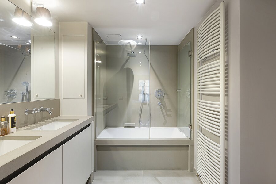 De masterbedroom beschikt over een eigen badkamer, wat een gevoel van luxe en discretie biedt. Daarnaast zijn er twee extra slaapkamers met een afzonderlijke douchekamer, ideaal ingericht voor familie, logees of extra comfort.