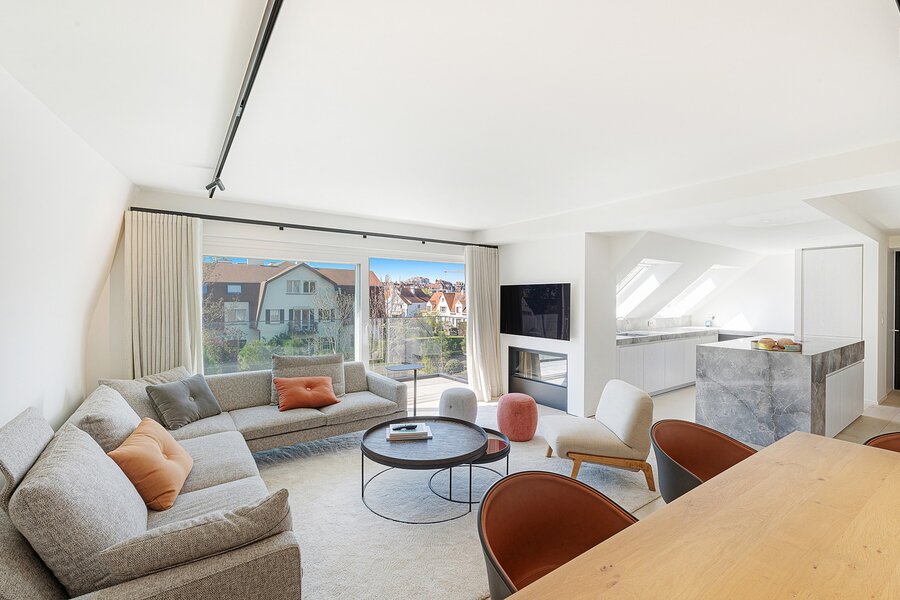 Prachtig gerenoveerd appartement met  zuidwest gericht terras op wandelafstand van het strand en het Albertplein in het Zoute. Appartement van 154m² met drie volwaardige slaapkamers. Indeling: inkomhal met gastentoilet. Lichtrijke woon-en eetkamer met haard en toegang tot het zonneterras. Volledig ingerichte keuken voorzien van alle apparatuur. Masterbedroom met aansluitende badkamer (douche, dubbele lavabo en toilet) met toegang tot het 2de zonneterras. Op de tweede verdieping: 2 ruime slaapkamers met elk hun eigen douchekamer.  Apart toilet in de nachthal. Bergruimte met aansluiting voor wasmachine. Iedere slaapkamer is voorzien van ingemaakte kasten. Privatieve kelder en ruime fietsenberging. Mogelijkheid tot aankoop van 1 garagebox in de residentie. Heel luxueuze afwerking: Vola kranen, microtopping, wijnfrigo,... De residentie heeft een frisse, eigentijdse uitstraling gekregen: transparante balkons, vernieuwde wandelpaadjes, heraangelegde tuin,....Contacteer Knokke Real Estate om een bezoek in te plannen.