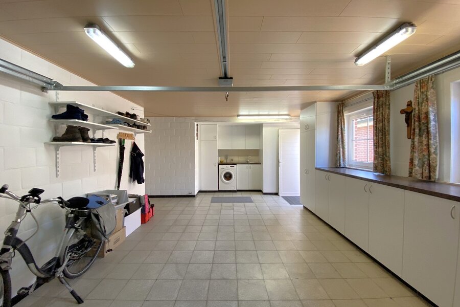 - Ruime, volwaardige garage met maatwerkkasten en aansluitingen voor wasmachine en droogkast