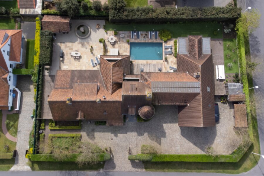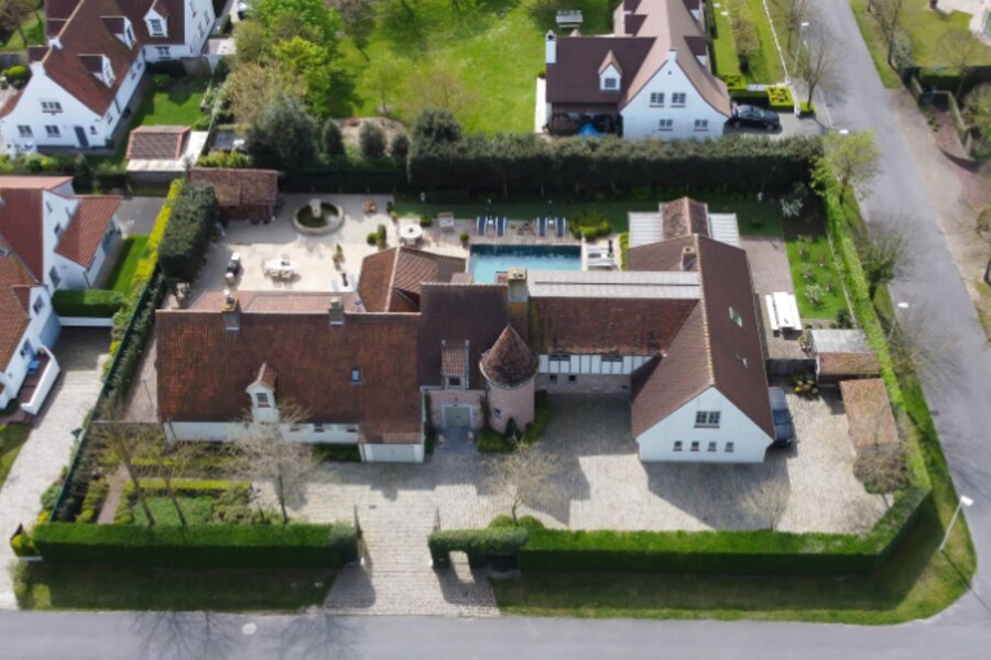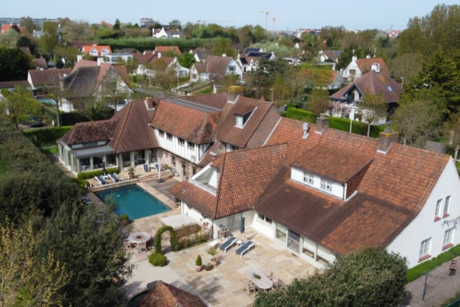 Exclusieve eigendom villa met B&B op een perceel van 1989m² gelegen in het hart van de Simli-wijk te Nieuwpoort-Bad. Deze grandioze villa met een bewoonbare oppervlakte van 860m² biedt u een compromisloze interactie van afwerking, comfort en ruimte! Het privé-gedeelte is voorzien van een grote inkomhal met een magistrale eiken trap, apart toilet, ruime woonkamer met houtkachel, compleet afgewerkte open keuken, wijnkelder avant la lettre van Cellier, veranda met uitzonderlijk veel licht & zon-inval, waskamer met centrale verwarming, doorgang naar het commerciële gedeelte & privé- gedeelte met de lift, bovenverdieping met 2 grote slaapkamers, dressing & één grote badkamer met bubbelbad, douche en dubbele wastafel. Buiten vinden we een zeer groot natuurstenen terras (96m²) met kasteelfontein en een eiken chalet afgewerkt met oude dakpannen en ingericht als tiroler hütte. Het commerciële gedeelte omvat een zéér kwalitatieve 4 sterren B&B met goede bewezen omzet; buiten zijn er 7 verschillende parkeerplaatsen zowel voor privé gebruik als voor de gasten. De gasten worden ontvangen in de lobby met zithoek en open haard met uitzicht op het zwembad, een aperitief kan geschonken worden in het gezellige "Au Petit Café" in eigentijdse stijl, de gang is voorzien van vestiaire en toilet en geeft uit op de professionele keuken waar menig topchef heeft gekookt en de fenomenale gezellige ontbijtruimte (80m²) met buffet met koeling en open haard & beamer. De bovenverdieping is toegankelijk via de torentrap of de lift, hier vinden we vier luxe-suites allemaal tijdloos ingericht met rustieke materialen en eiken parket en elk voorzien van hun eigen sanitair, bureelruimte op het einde van de gang. Er is een ruime dubbele garage met sectionale poort en technische ruimte voor frigo's en diepvries; chauffage & boilers. Buiten geniet u van een zonovergoten zuidwestgericht natuurstenen terras aan de rand van het zwembad in mozaïk (verwarmd via warmtepomp met warmtewisselaar, voorzien van automatisch rolluik in polycarbonaat). Aan de achterzijde vinden we nog een serre van 3x4m, 2 regenputten van 5000 Liter aangevuld met boorputwater; grote houtopslag en fietsenberging. Hoogwaardige afwerking door het Bourgondisch Kruis; alle kamers zijn voorzien van oude eiken deuren, afzonderlijk toilet en vestiairekast. EPC: 227 kWh/m². Vraagprijs: op aanvraag.