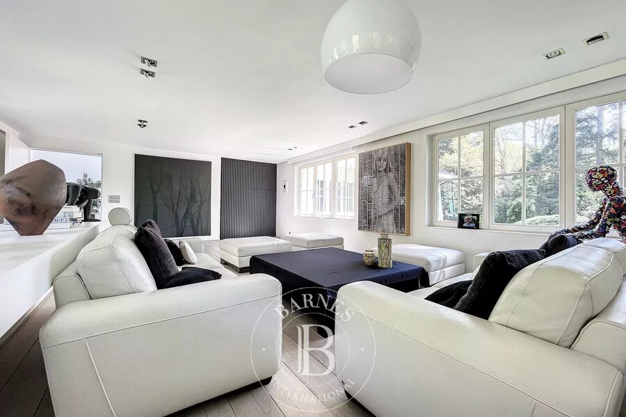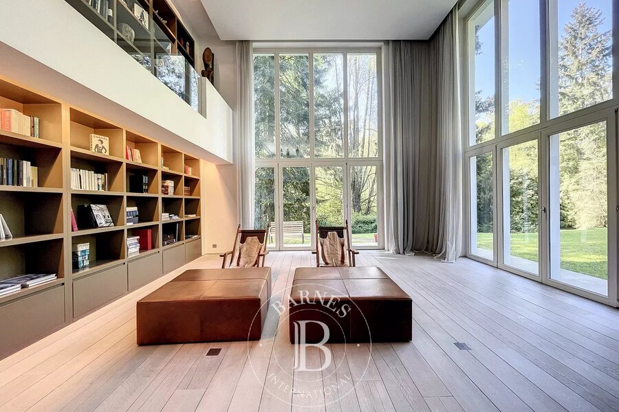 Met een bruto woonoppervlakte van 765 m² (bron PEB) en genesteld in het hart van 56 hectare prachtig bebost terrein op het zuiden, combineert deze woning op elegante wijze levenskunst, zeldzame volumes en alomtegenwoordig licht.