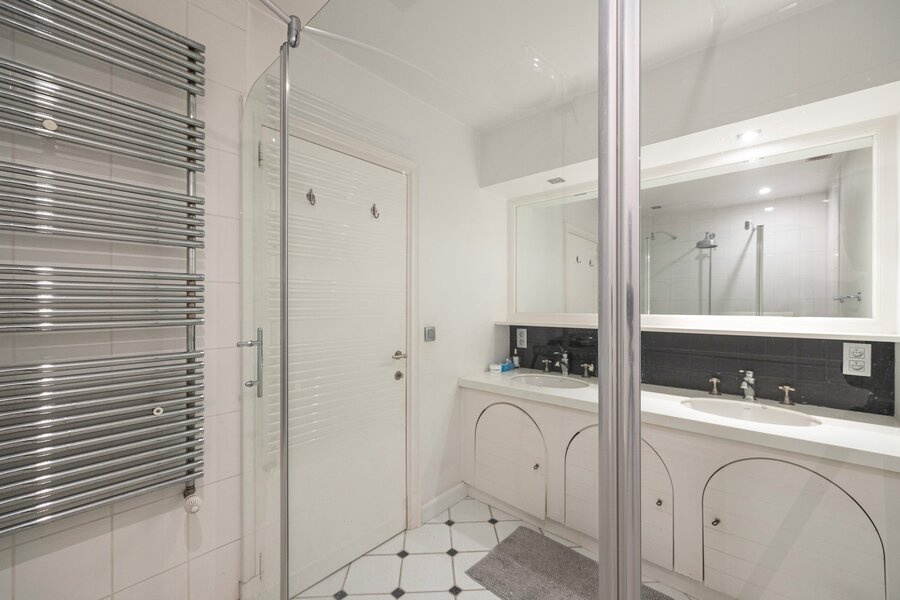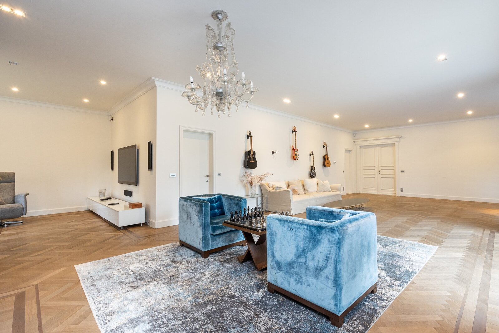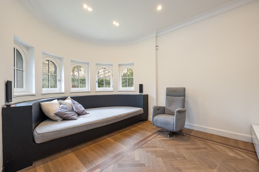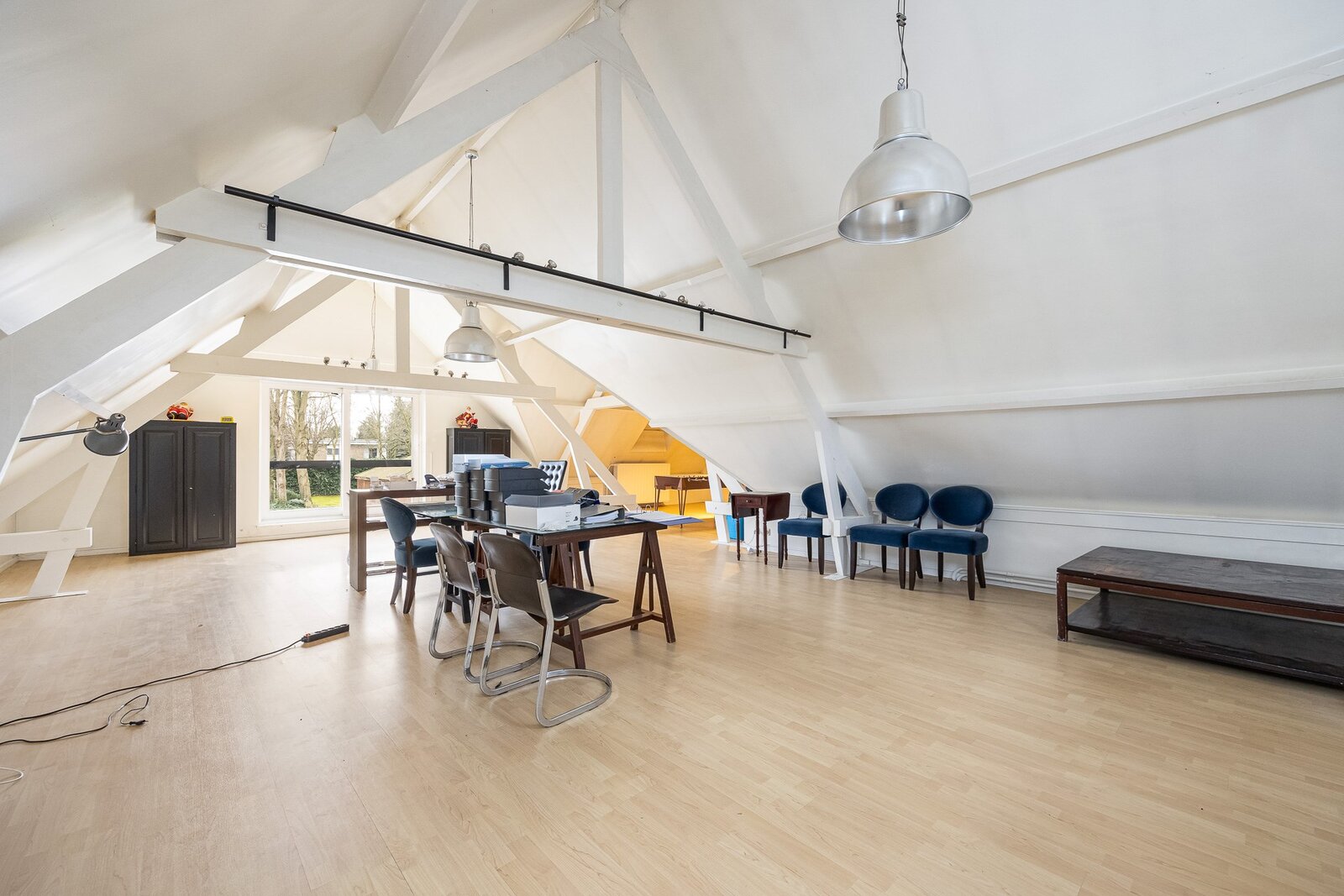 De 1ste verdieping kan je zowel via de hoofdtrap in de inkomhal of via de dienstentrap aan de zij-ingang bereiken. Master bedroom met aangrenzend bureau of dressingruimte en badkamer. Op de eerste verdieping bevinden zich nog 4 slaapkamers en 2 badkamers. Grote troef: er is nog een riante ruimte dewelke benut kan worden als atelier, speelkamer voor kinderen, tweede woonkamer, wat het hartje ook maar begeerd.