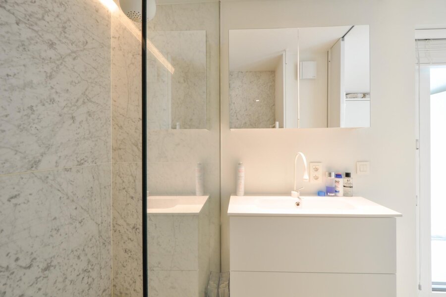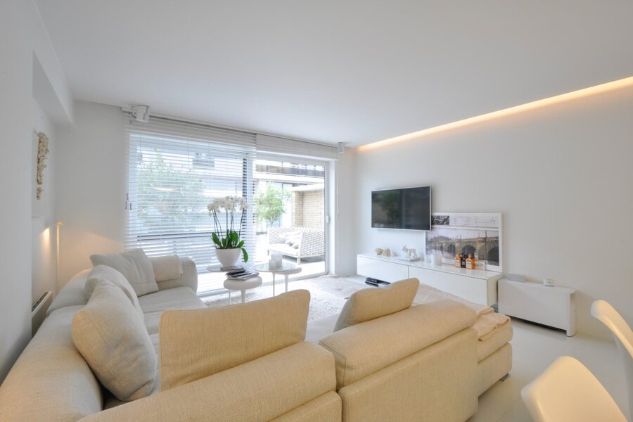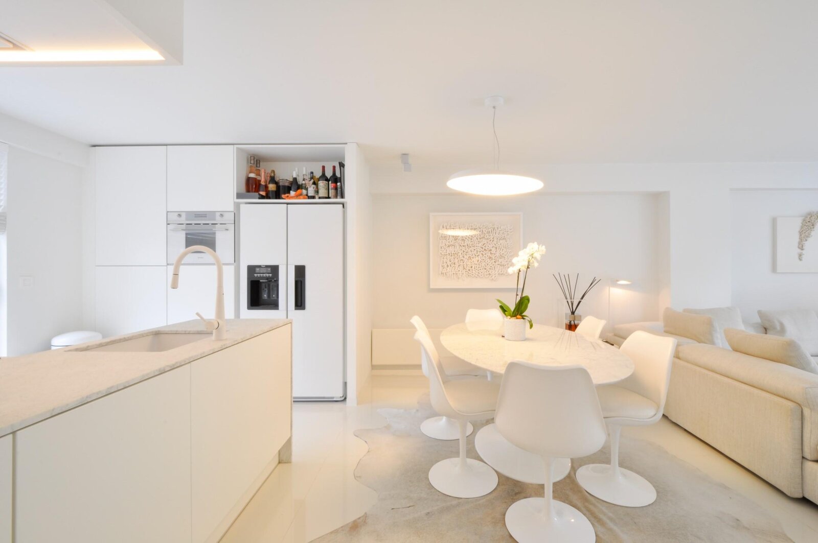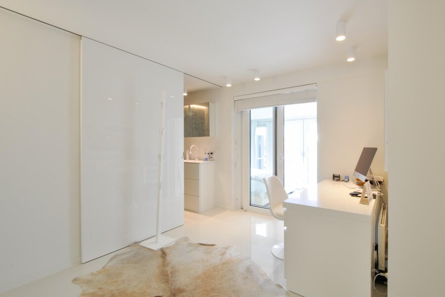 Dit appartement straalt een bijzondere, rustgevende sfeer uit dankzij het gebruik van hoogwaardige materialen, zachte wittinten en een stijlvolle inrichting.