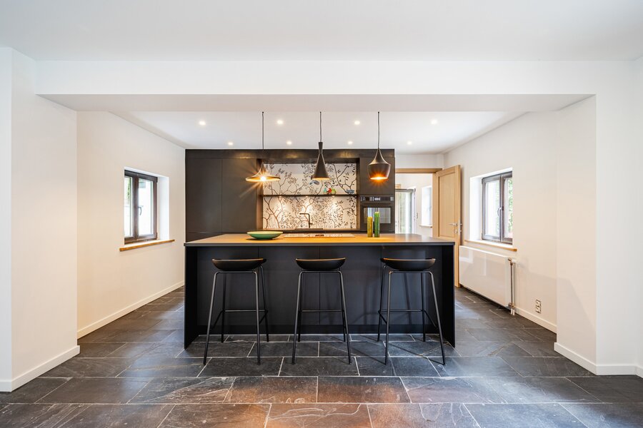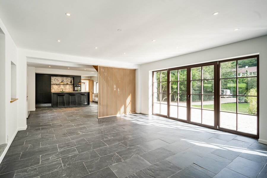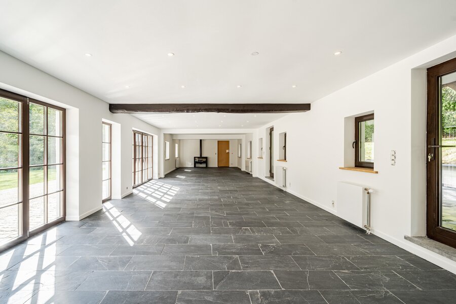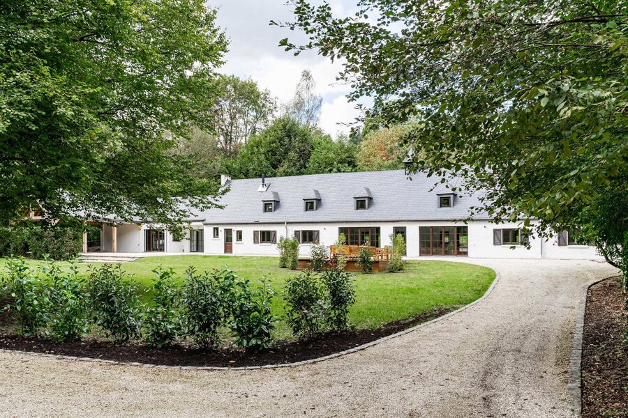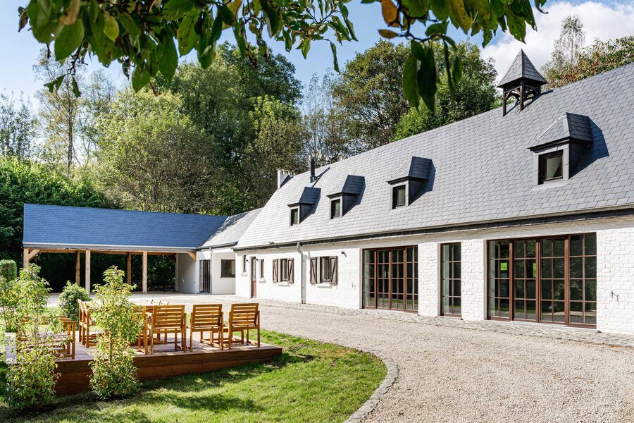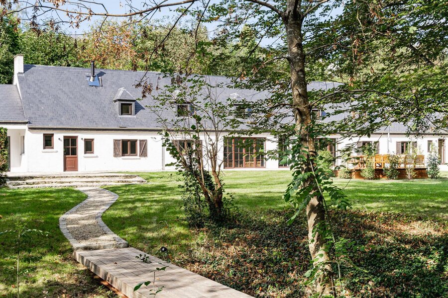 Gelegen in de nabijheid van Ohain werd deze uitgestrekte villa van ± 500 m² grondig gerenoveerd. Ze geniet van een landelijk, gedeeltelijk aangelegd en bebost park, met een totale oppervlakte van ± 57 are 13 ca en een vleugje exclusiviteit door de toegangspoort, de brugjes, de bron, het gazon en de de Zilverbeek die door het domein stroomt.