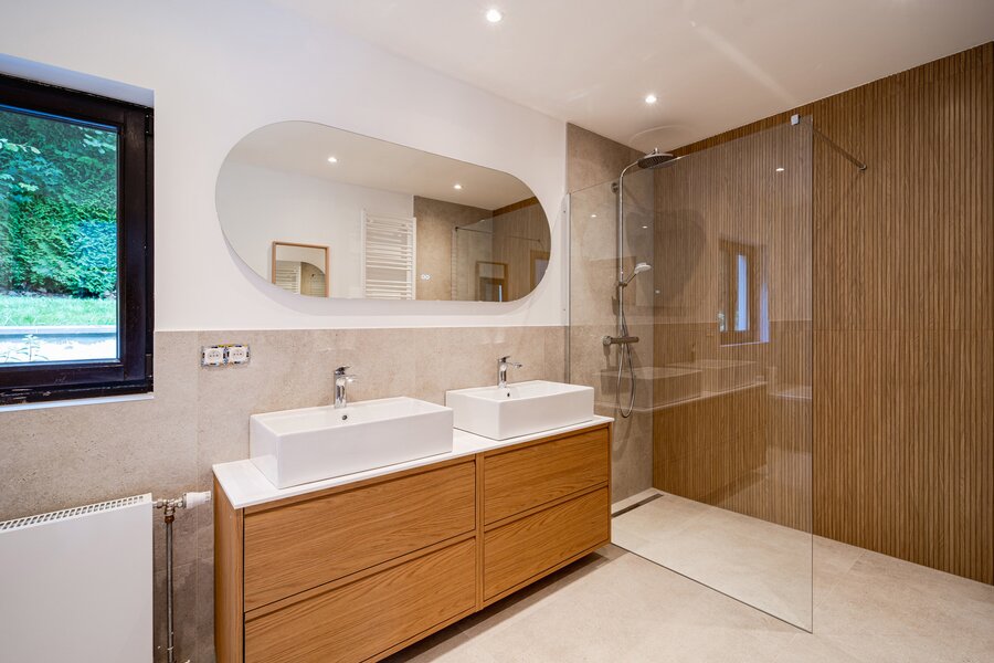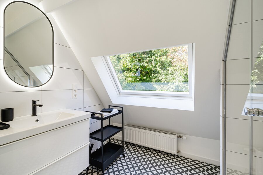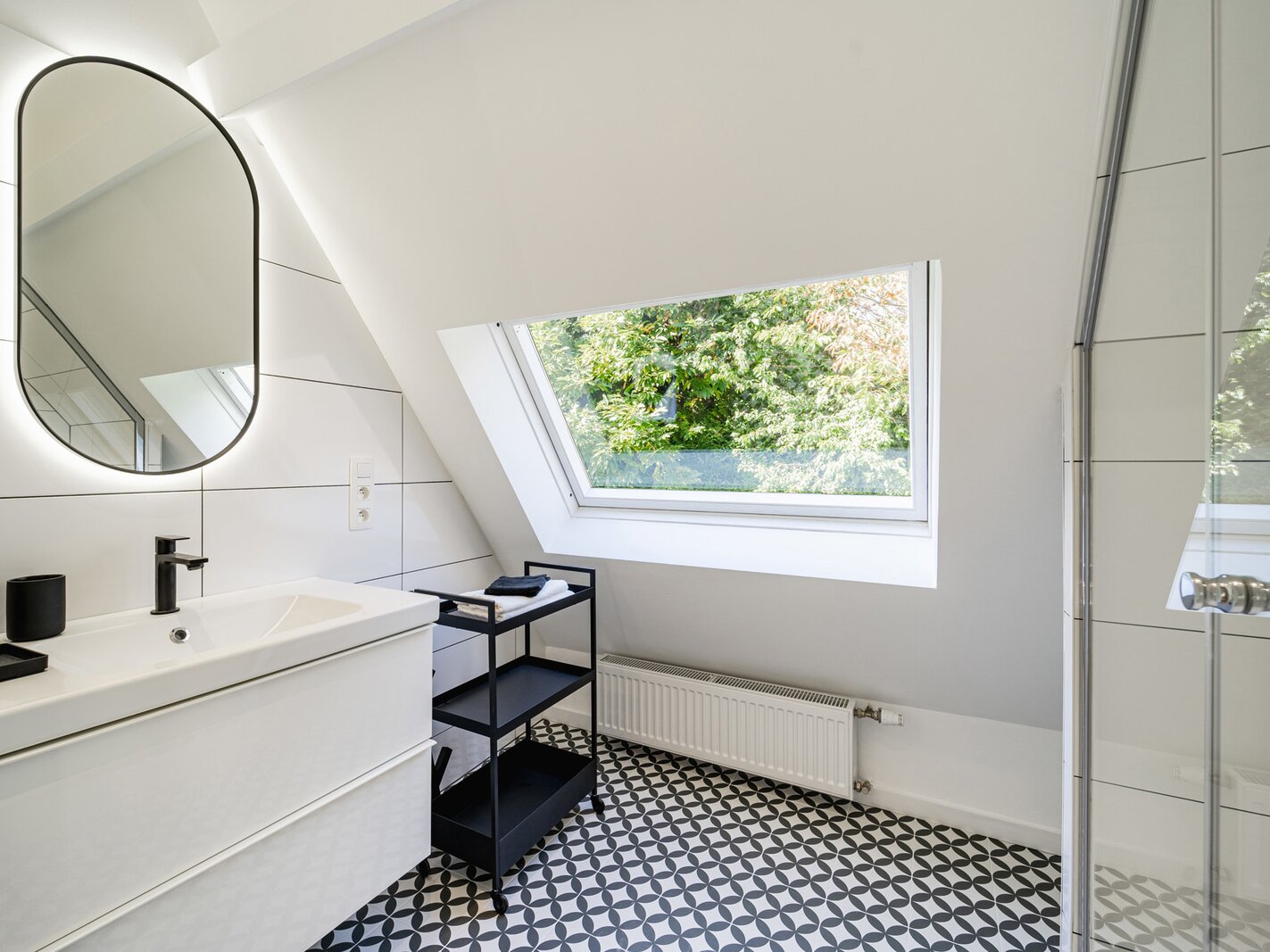 Praktisch gezien is de villa toegankelijk via 2 aparte ingangen en heeft ze de volgende samenstelling: 2 ruime woonkamers, 2 keukens evenals 2 wasruimtes, 1 kantoor en 1 dubbele garage. De bovenverdieping onder het dak telt 4 slaapkamers, 2 doucheruimtes, 2 toiletten en 2 kantoorruimtes. Het pand is onderworpen aan een vergunning waardoor het huis kan worden opgedeeld in 2 afzonderlijke eenheden voor 2 woningen of professioneel gebruik.