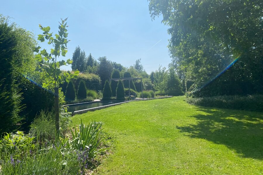 Volledige omheining en een hoge beukenhaag garanderen absolute privacy voor bewoners en gasten.
