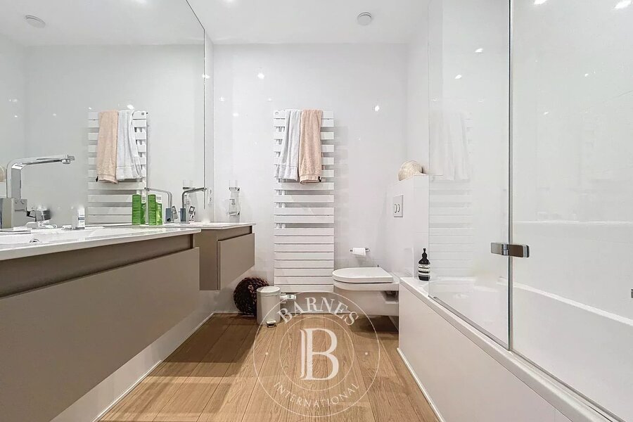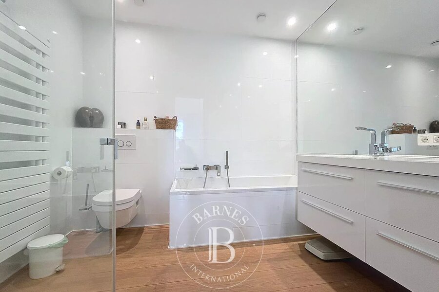 Volledig ingerichte keuken met ontbijthoek, hoofdslaapkamer met toegang tot het terras, kleedkamer en badkamer, tweede slaapkamer met badkamer en toilet.