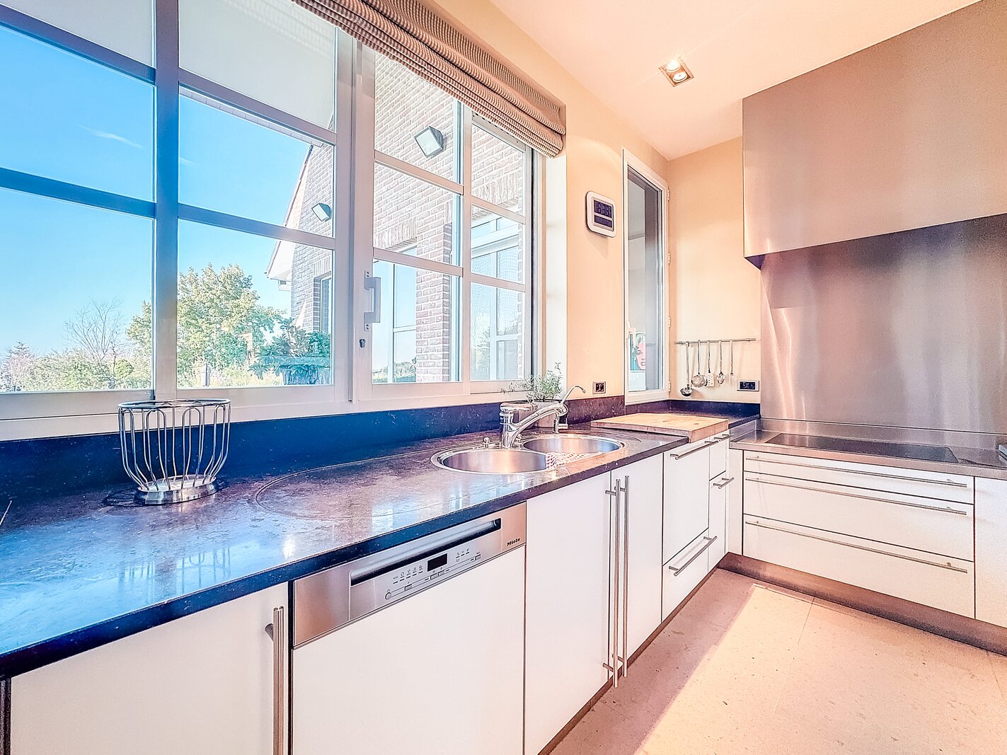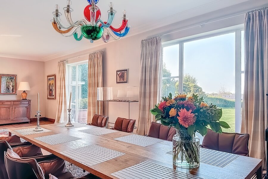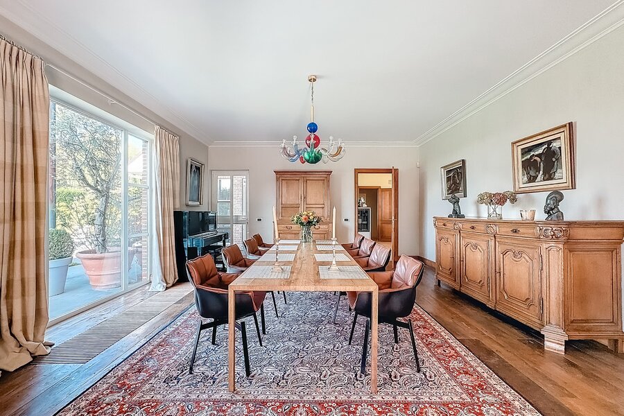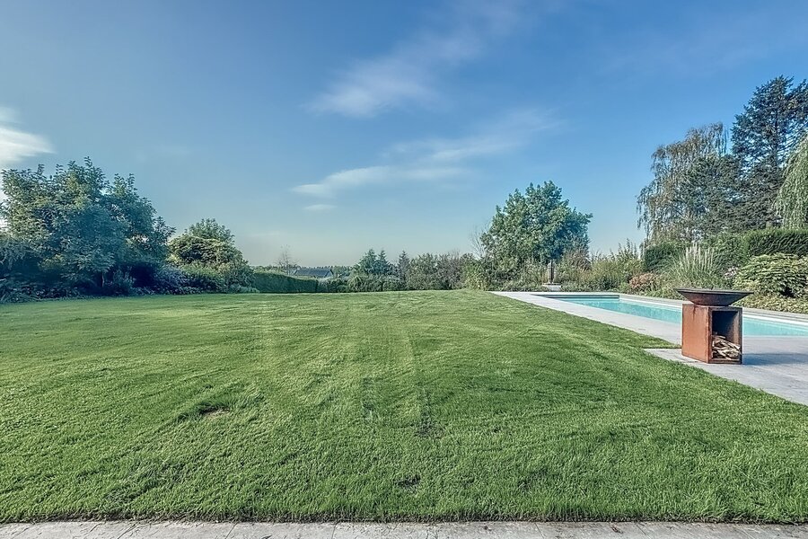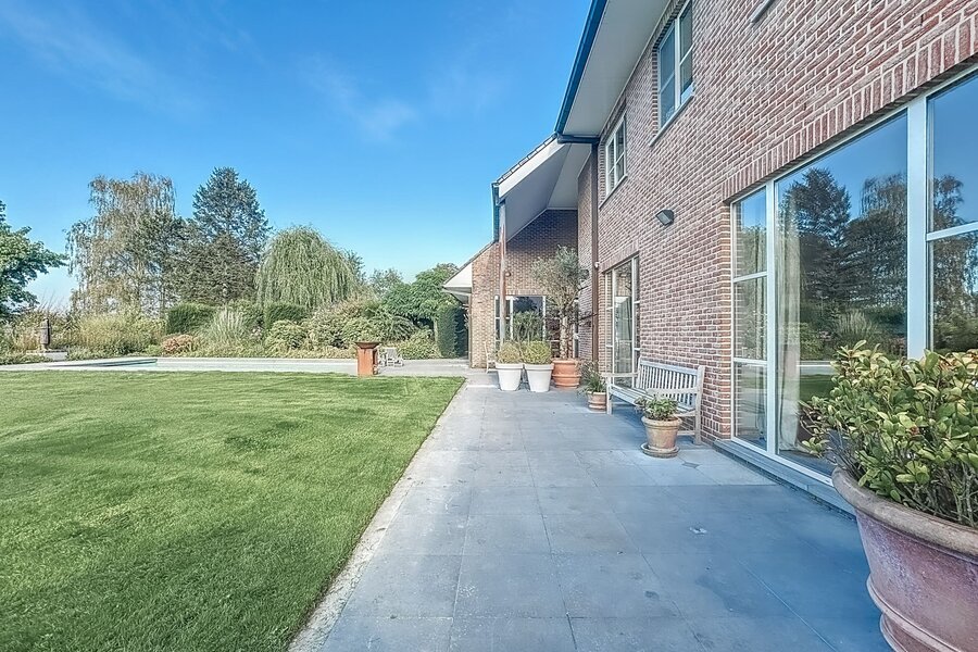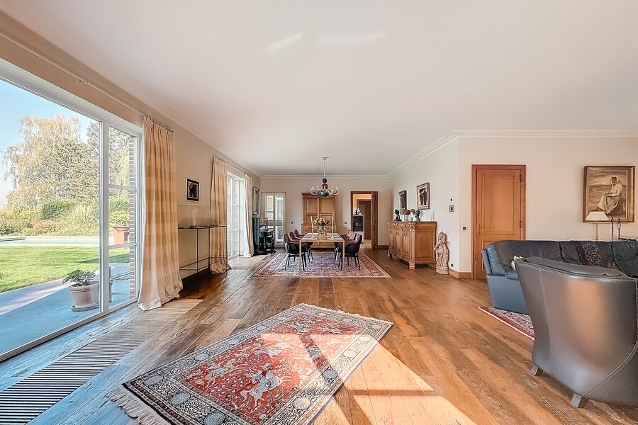 Deze prachtige villa uit 1996 ligt op een royaal perceel van 35a 89ca en biedt een onbelemmerd uitzicht dankzij de lichte afhelling van het terrein. Met een totale oppervlakte van bijna 1.000 m² (waarvan ± 583 m² bewoonbare oppverlakte) verdeeld over doordacht ingedeelde ruimtes, is deze woning een toonbeeld van luxe en elegantie.
