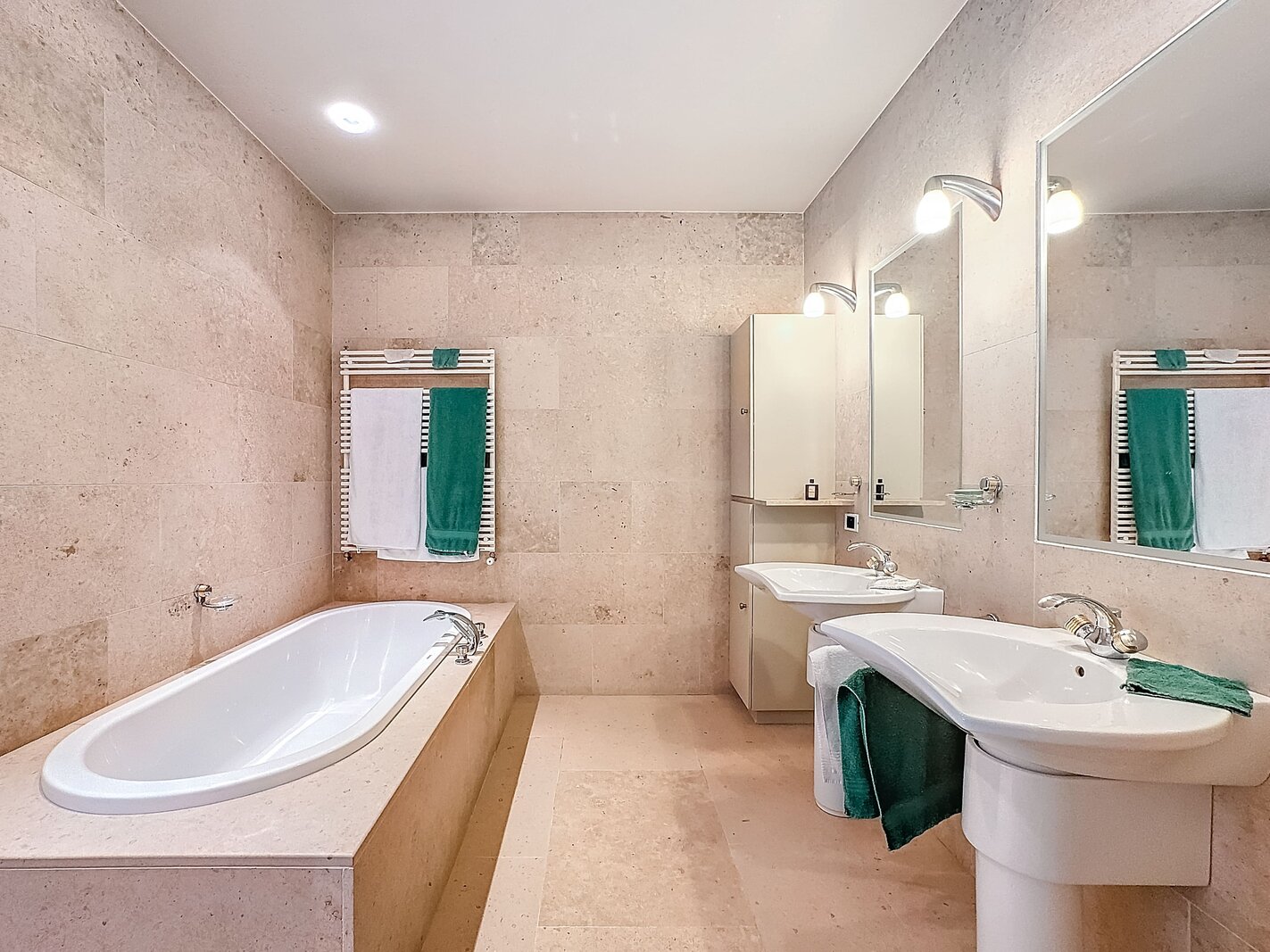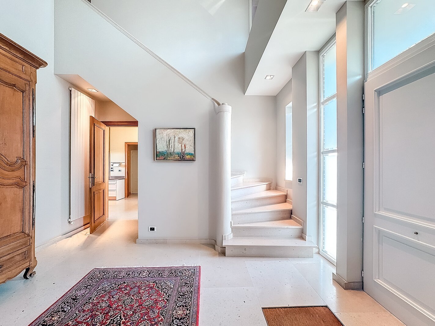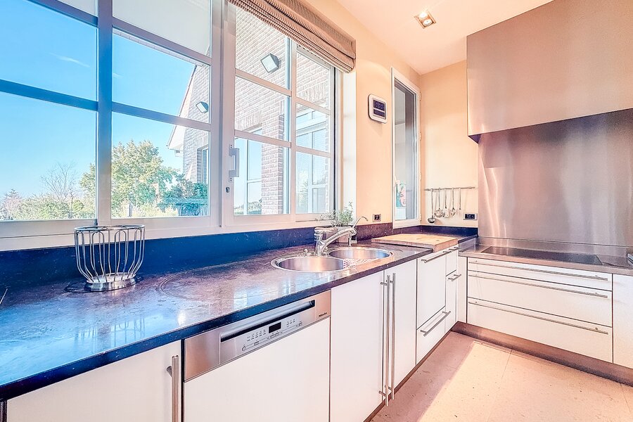 Deze prachtige villa uit 1996 ligt op een royaal perceel van 35a 89ca en biedt een onbelemmerd uitzicht dankzij de lichte afhelling van het terrein. Met een totale oppervlakte van bijna 1.000 m² (waarvan ± 583 m² bewoonbare oppverlakte) verdeeld over doordacht ingedeelde ruimtes, is deze woning een toonbeeld van luxe en elegantie.