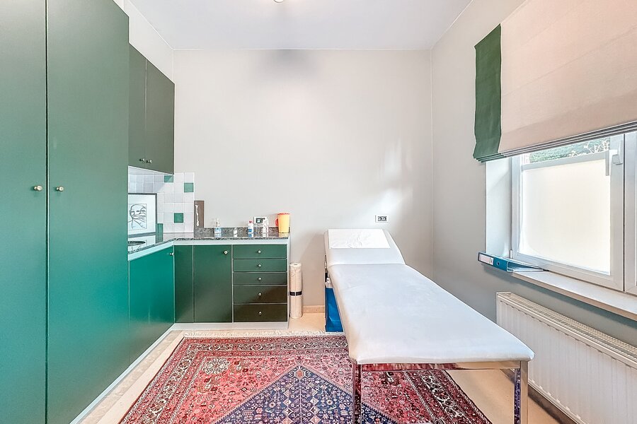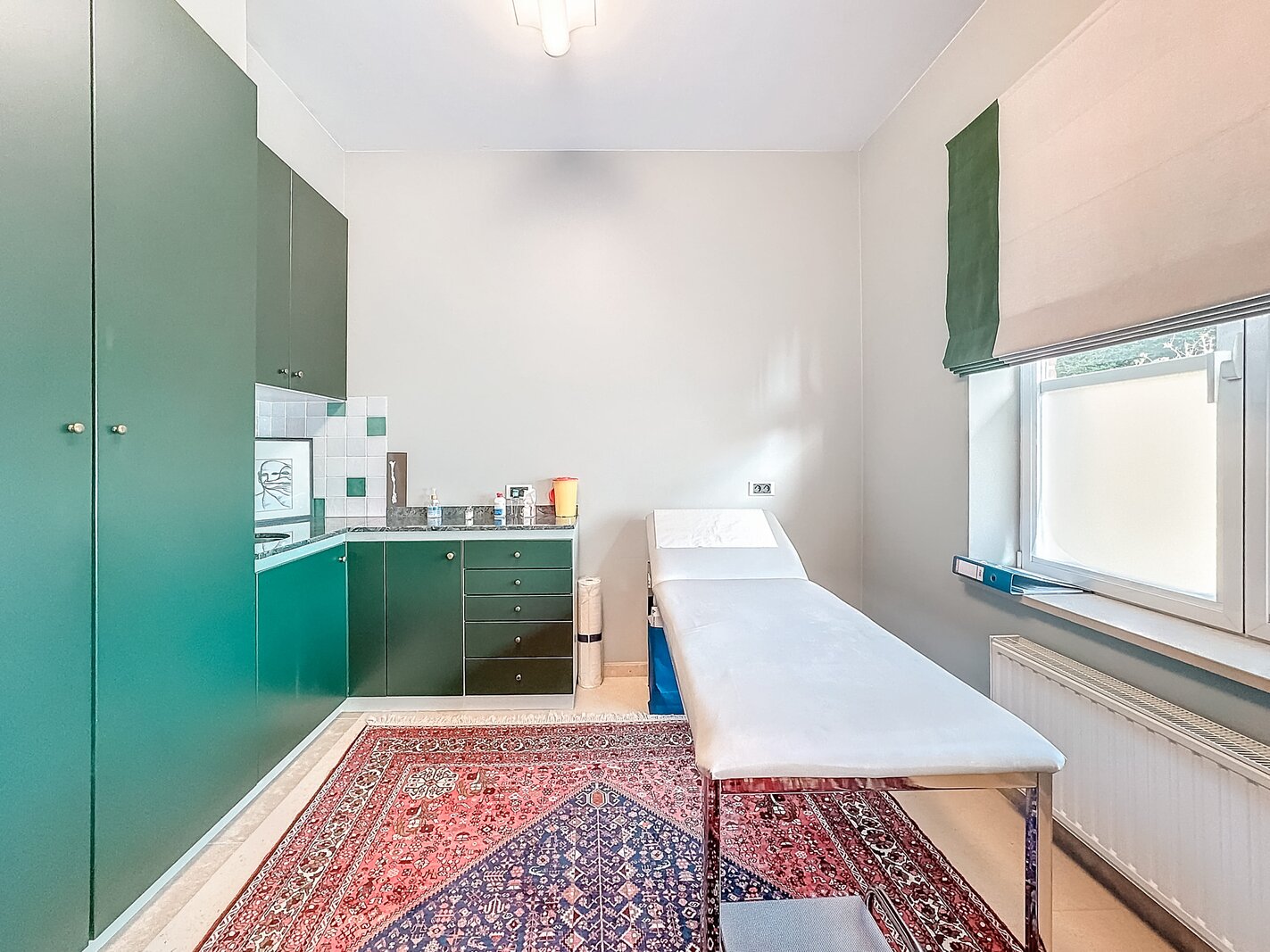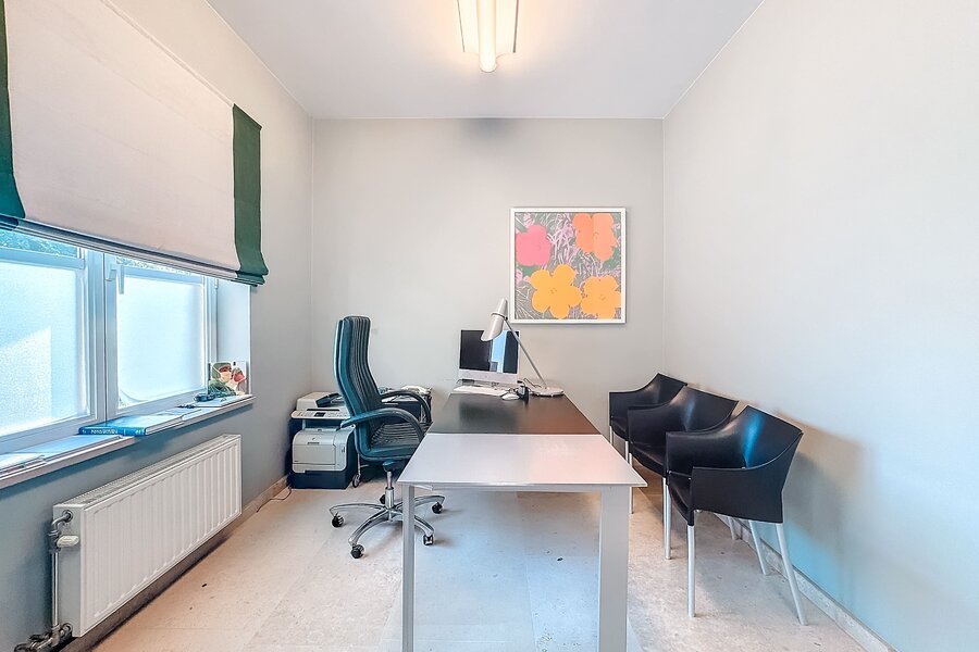 Aan de zijkant bevindt zich een praktijkgedeelte met aparte ingang en met twee ruime praktijkruimtes van elk meer dan 20 m² en een wachthoek.
