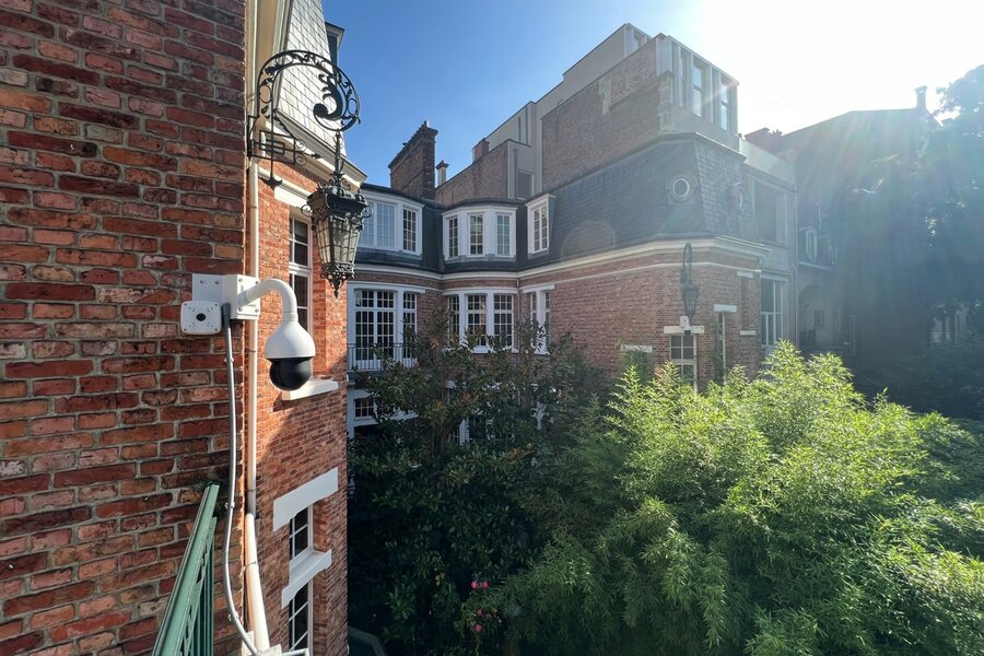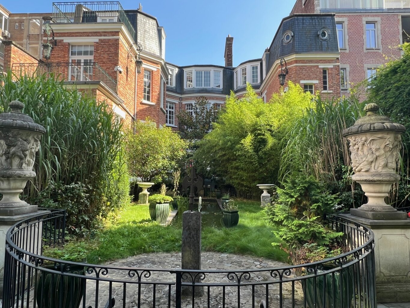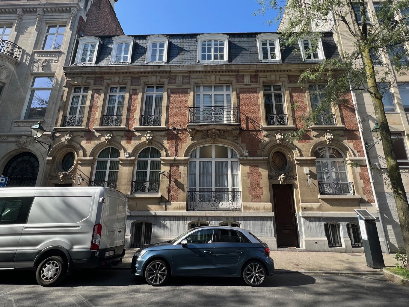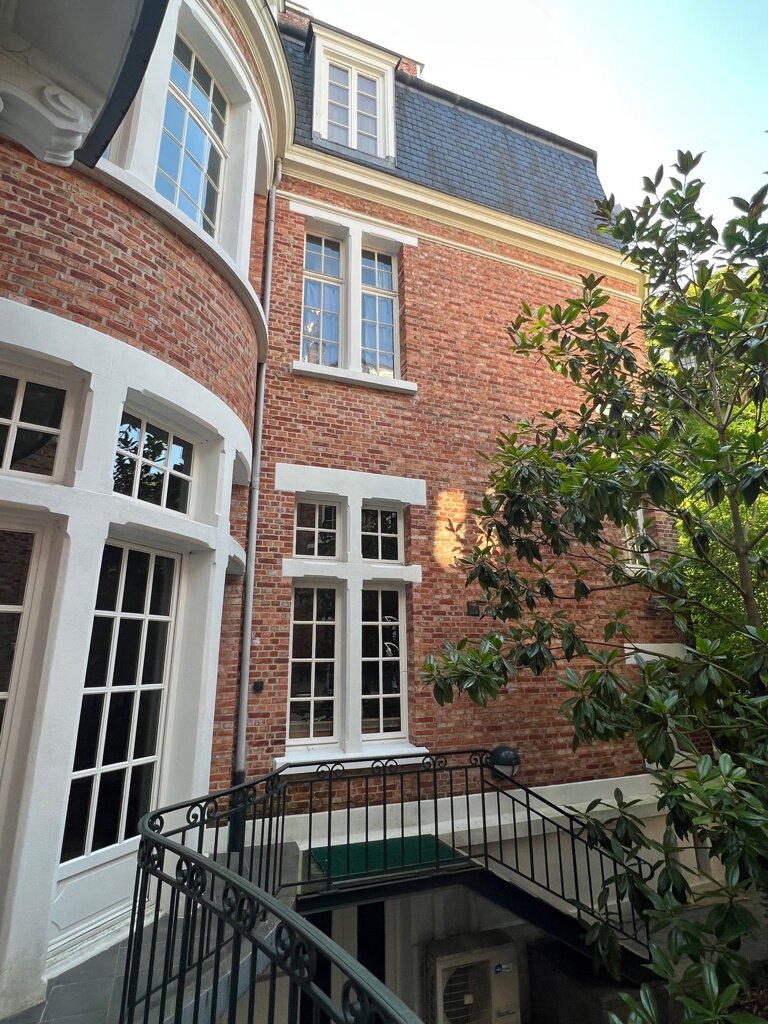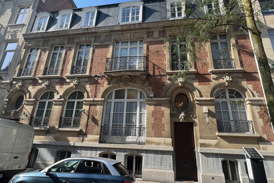 Tussen Place Stéphanie en Châtelain, een luxueus gebouw voor gemengd gebruik (kantoren en woningen) met een prachtig uitzicht over de tuin (perceel van 900m2). Het heeft een totale oppervlakte van 1.950m2, waarvan 945m2 kantoren, een conciërgewoning van 100m2 en 4 garageboxen, waarvan 1 dubbele.