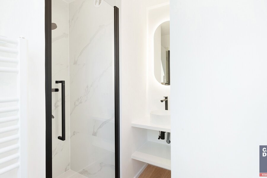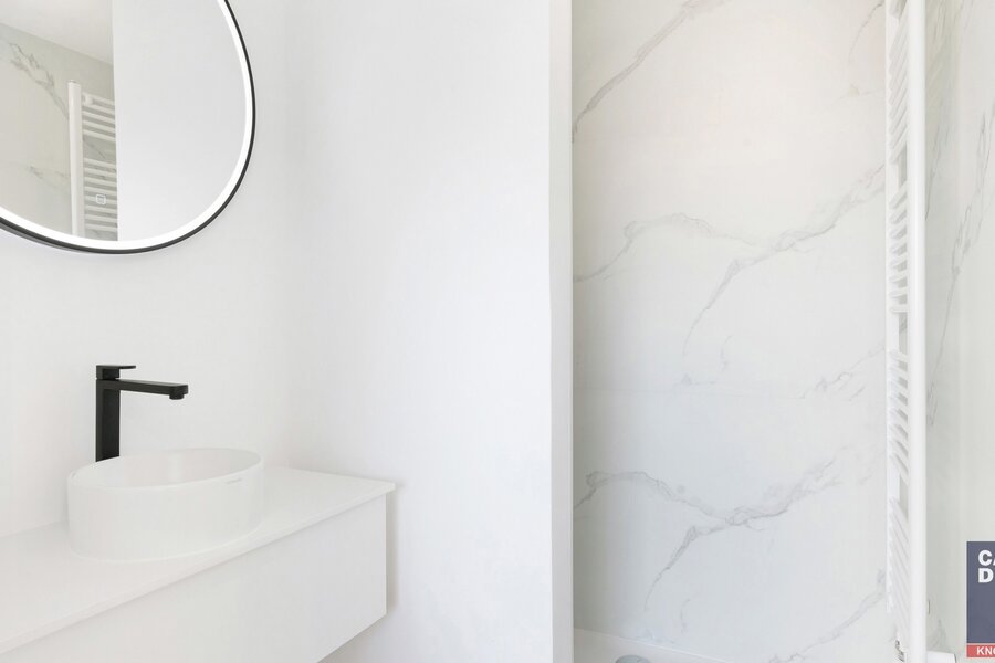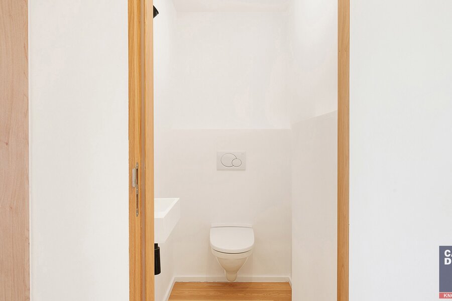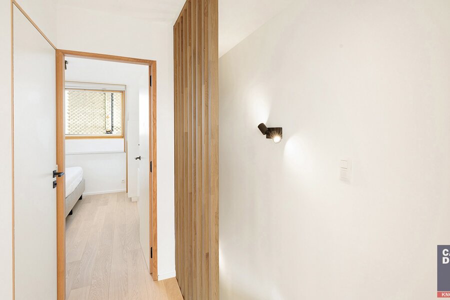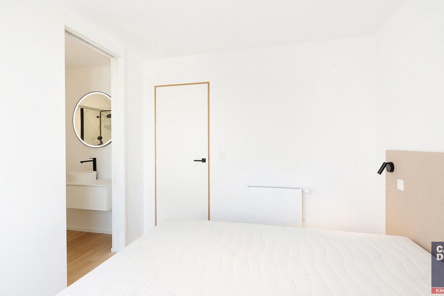 Indeling: inkom met vestiaire en gastentoilet, open keuken met eethoek, living uitgevend op het zeer ruim terras met prachtige zichten, master bedroom met badkamer en dressing, wasruimte/berging.