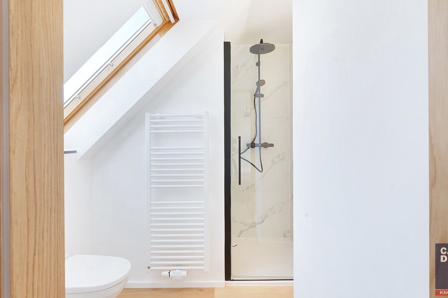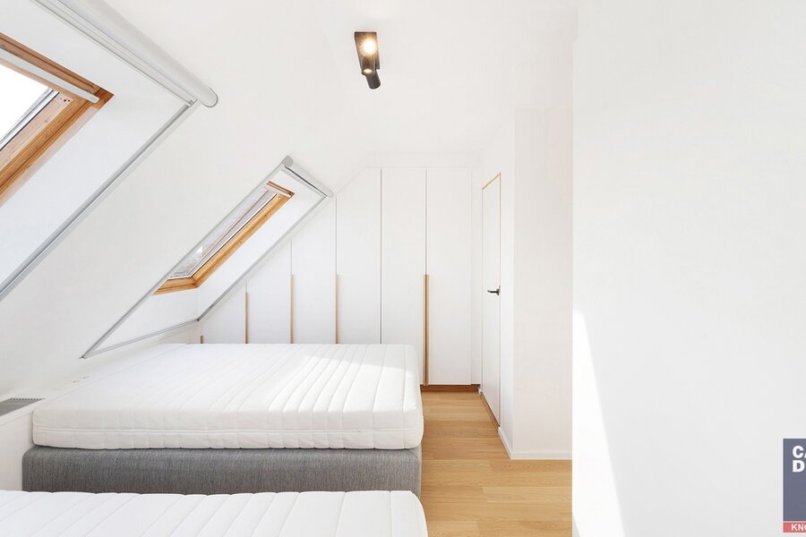 Op het verdiep zijn er 2 bijkomende kamers elk met hun eigen badkamer en ingemaakte kasten.