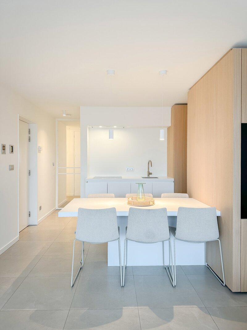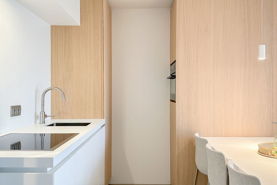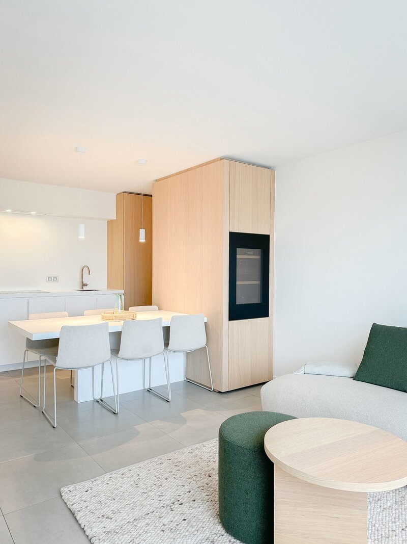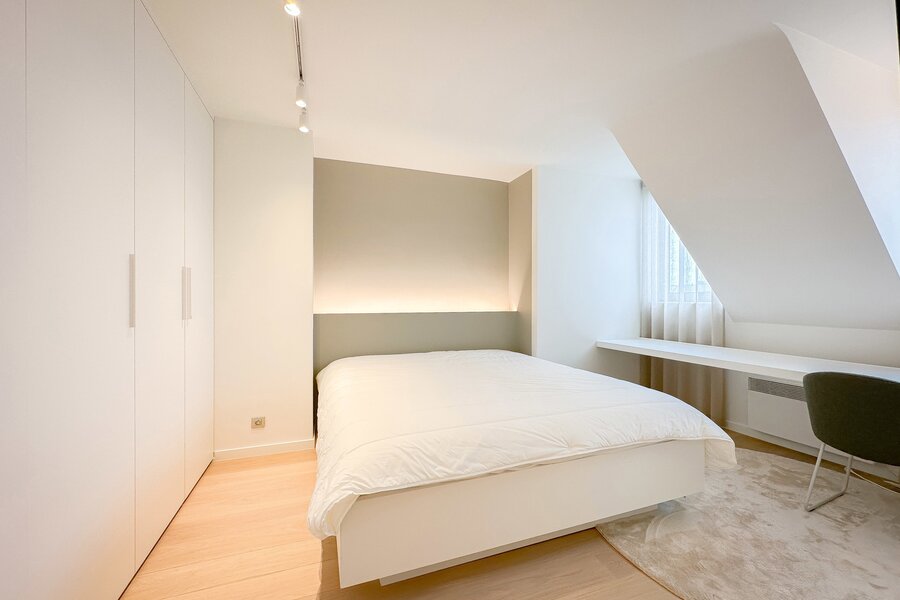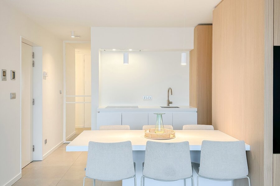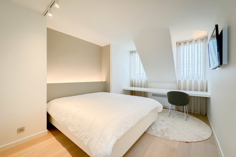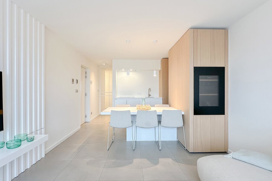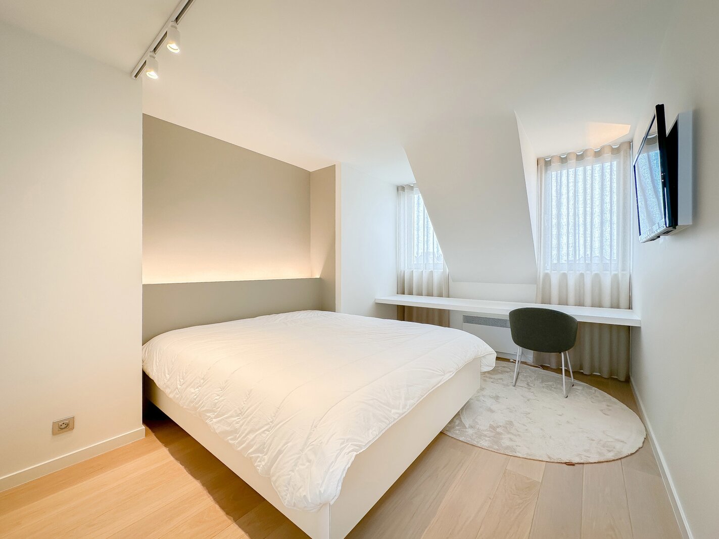 Het appartement is gerenoveerd en werd afgewerkt met tijdloze, stijlvolle materialen.