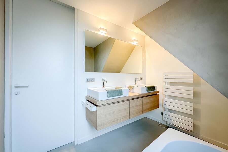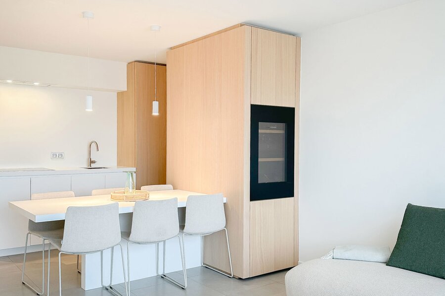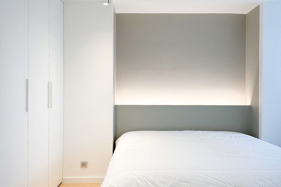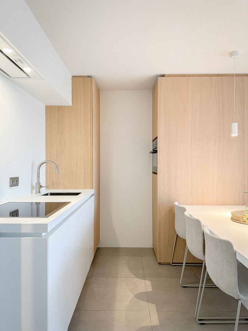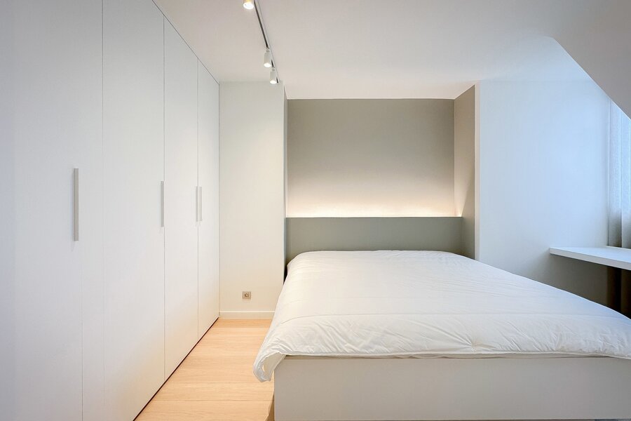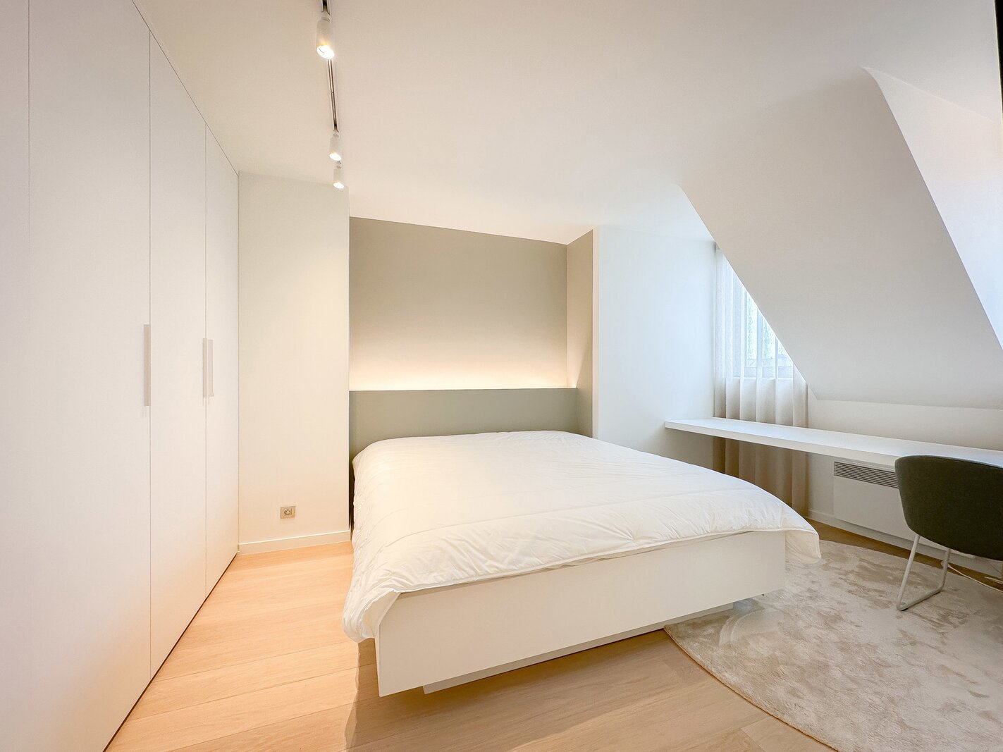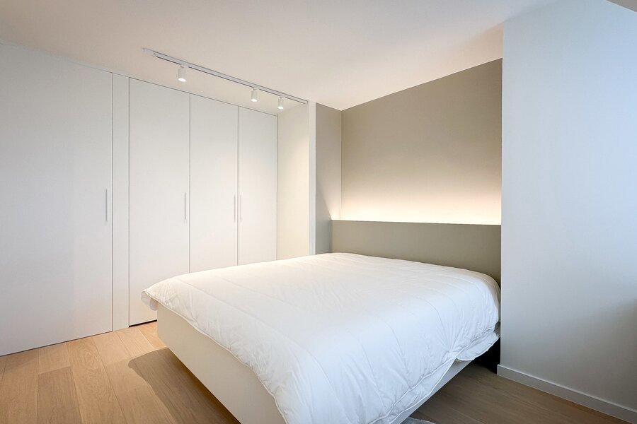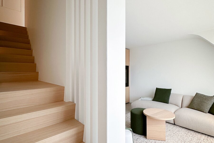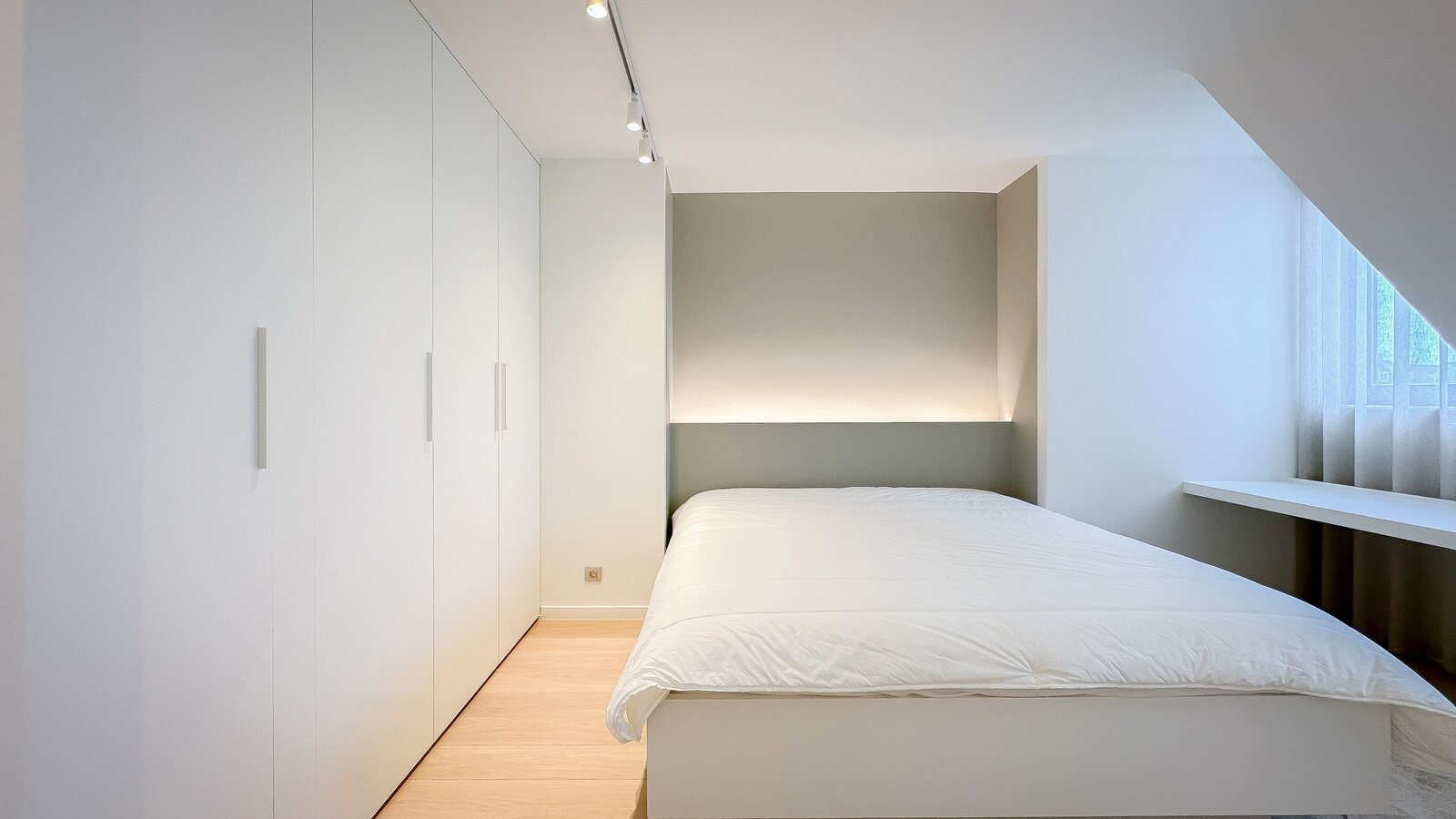 Het appartement is gerenoveerd en werd afgewerkt met tijdloze, stijlvolle materialen.