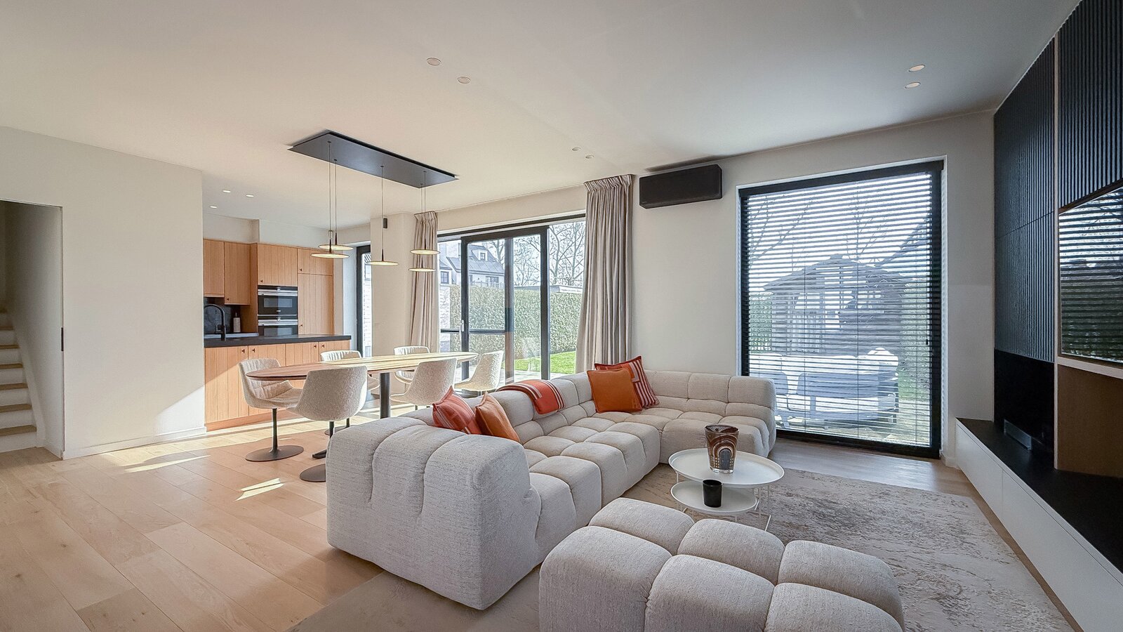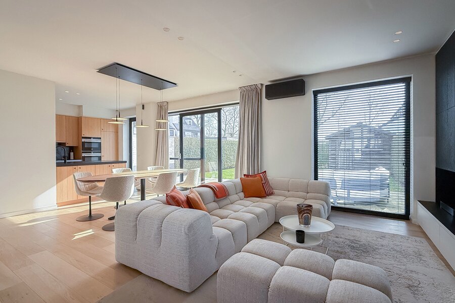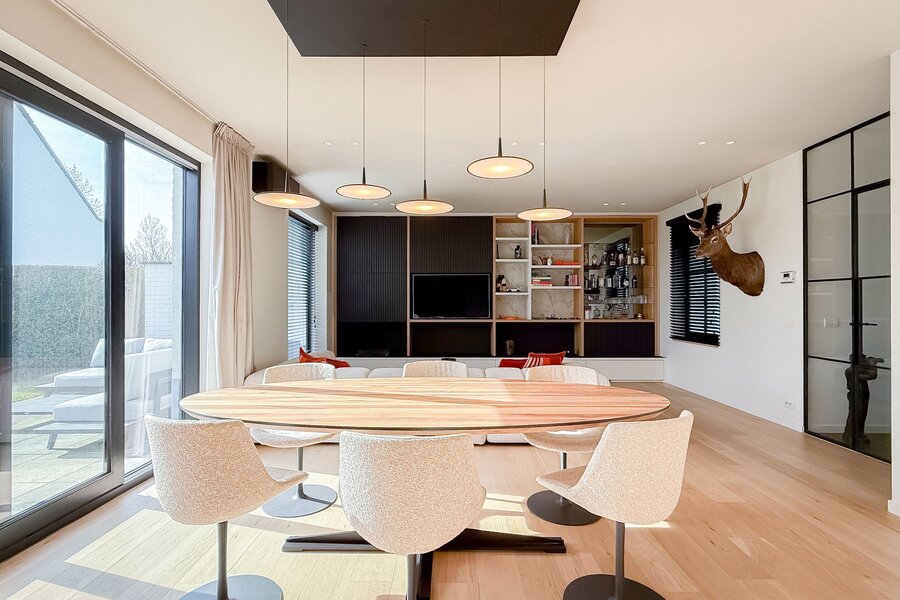 Indeling: Ruime, lichtrijke inkomhal met vestiaire en gastentoilet. De zonnige woonkamer met gezellige eethoek straalt warmte en gezelligheid uit. Grote schuiframen, voorzien van een vliegenraam, zorgen voor een naadloze verbinding met het goed georiënteerde terras en de prachtige tuin, waar je in alle rust kan genieten van de buitenlucht. De open keuken, uitgerust met alle hedendaagse comfort, maakt het geheel compleet. Daarnaast is er een handige bijkeuken voor extra opslag en functionaliteit.