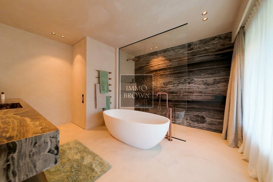 Luxueuze master bedroom met ruime dressing en ensuite badkamer voorzien van ligbad, inloopdouche, dubbele lavabo en toilet