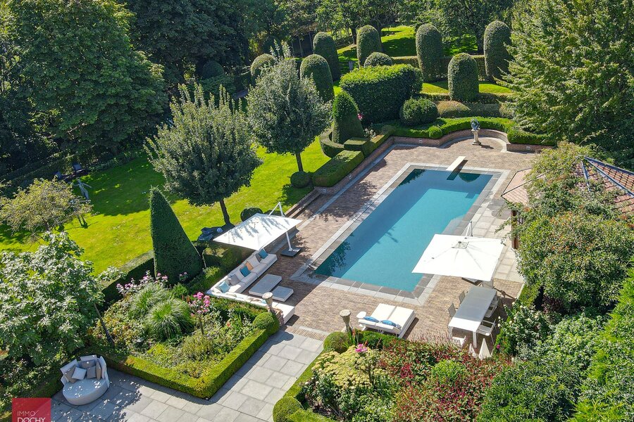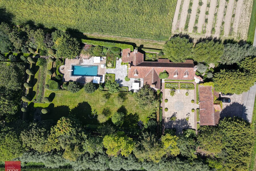 Inkomhal, living met open haard, afzonderlijk bureel, ingerichte leefkeuken met bijkeuken (wasplaats), gekoelde berging, 4 slaapkamers , 2 badkamers, wijnkelder, zolder, prachtige tuin met beregeningssysteem, zwembad en poolhouse (bar, keukentje, sauna en toilet). Airco aanwezig. CV op mazout in combinatie met zonnepanelen en warmtepomp.