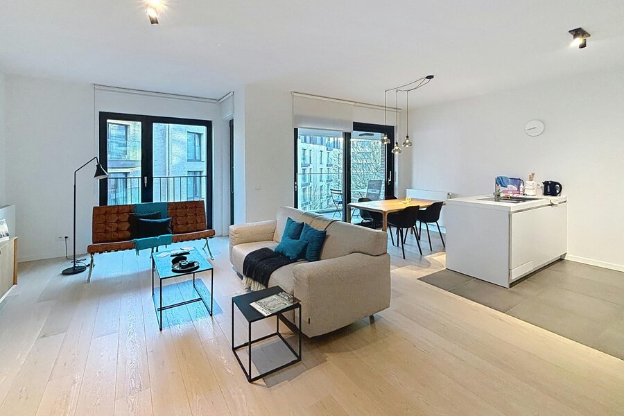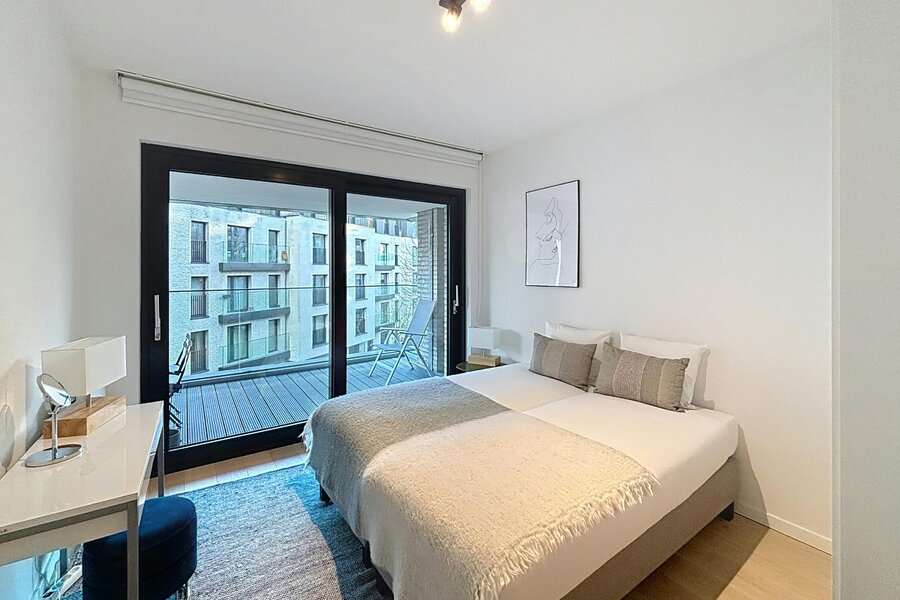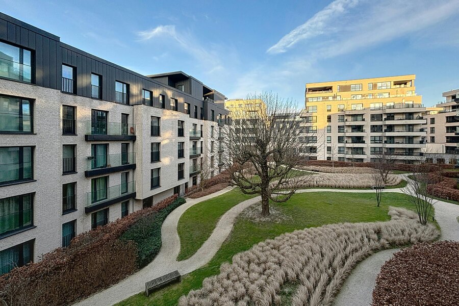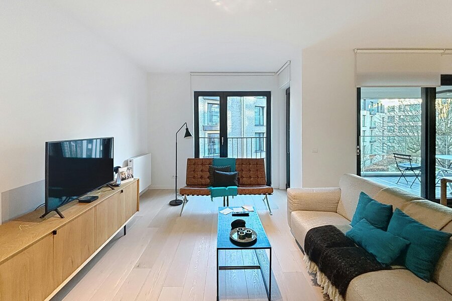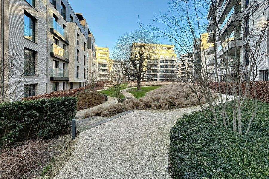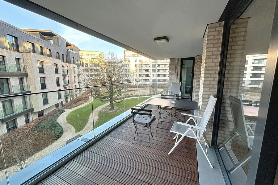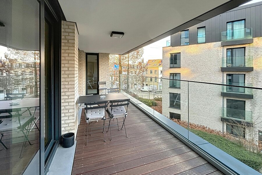 Elsene – Prachtig gemeubeld appartement van ±118m² met 2 slaapkamers in een recent, hoogstaand complex met mooie buitenruimtes.