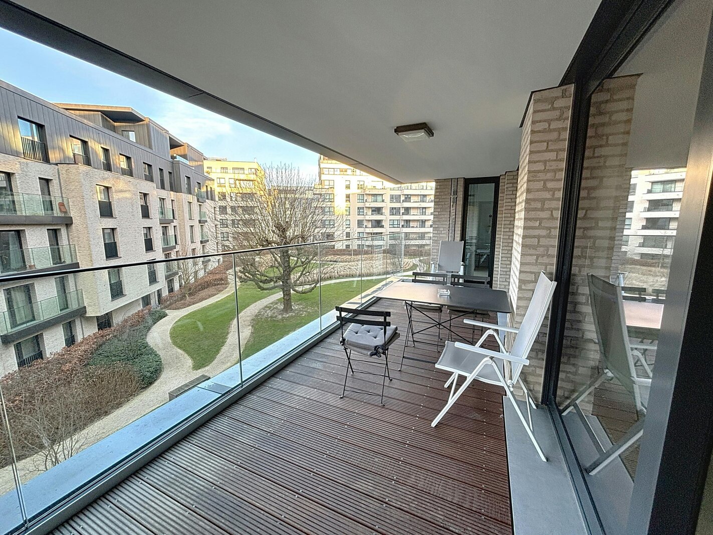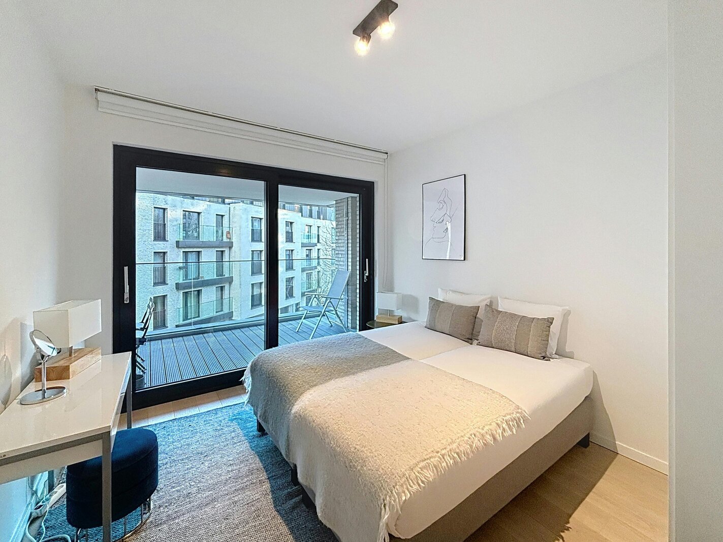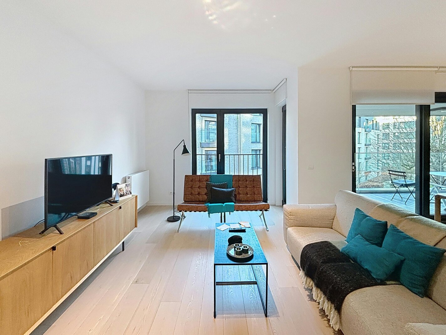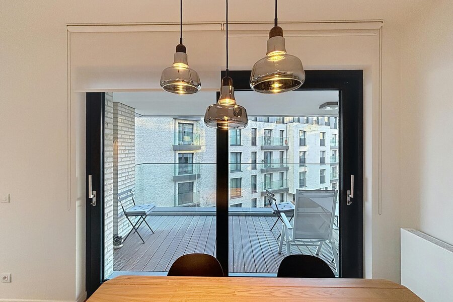 Elsene – Prachtig gemeubeld appartement van ±118m² met 2 slaapkamers in een recent, hoogstaand complex met mooie buitenruimtes.