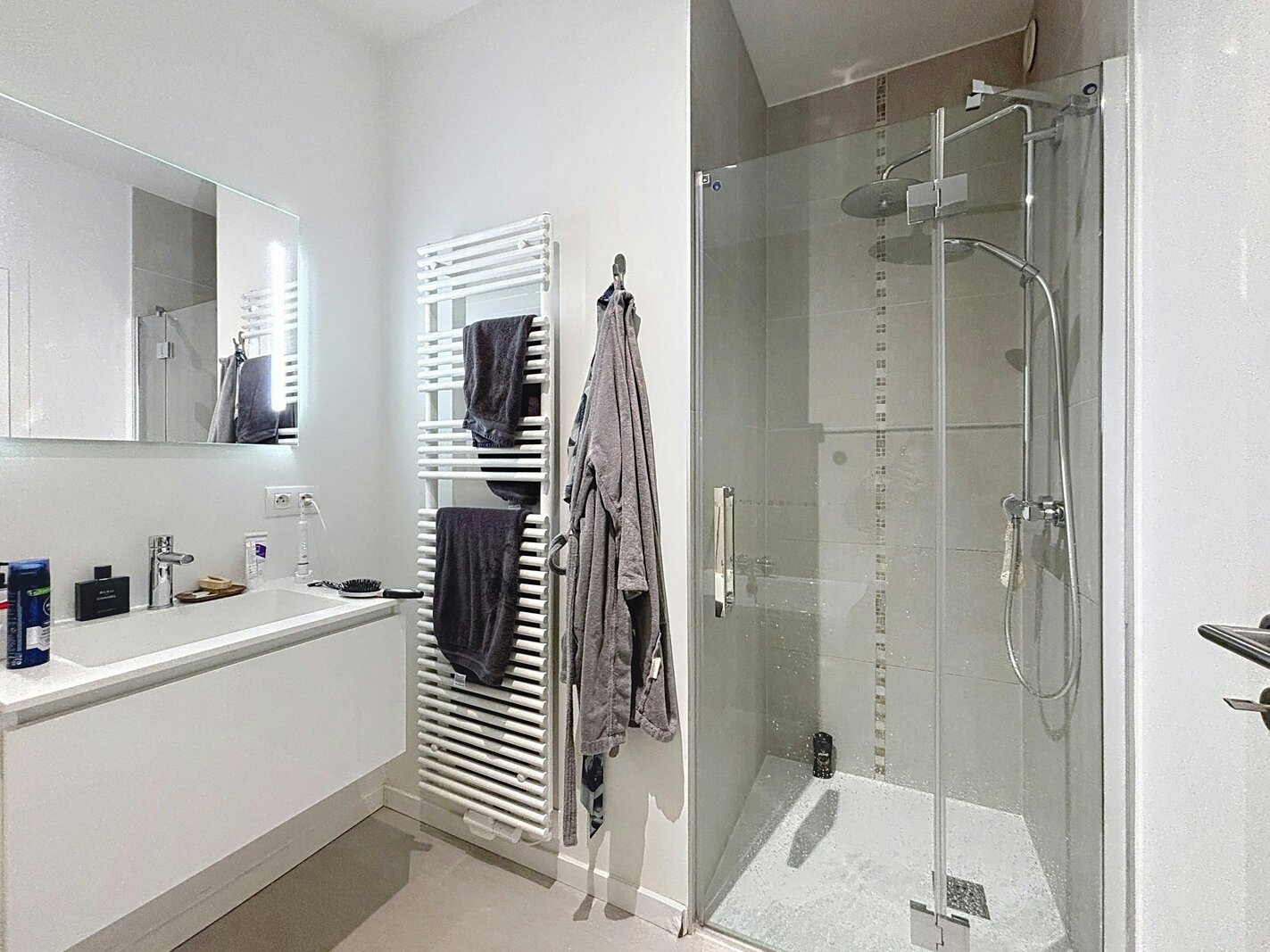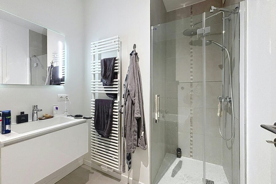 De 2 ruime slaapkamers (met ingebouwde kasten) beschikken elk over hun eigen badkamer en douchekamer.