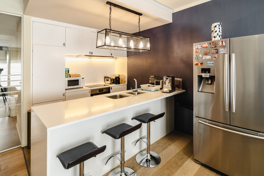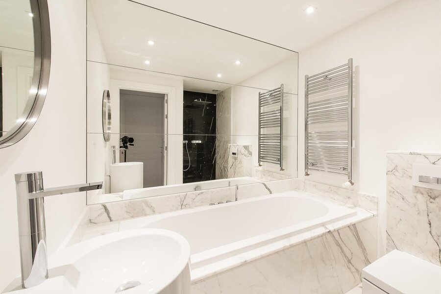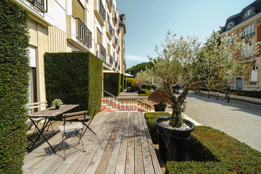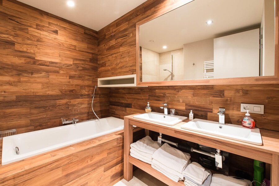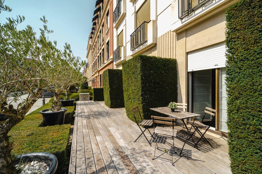 Het heeft drie slaapkamers, een badkamer en twee doucheruimtes. De ruime ontvangstruimtes, bestaande uit de woonkamer, de eetkamer en de open keuken, komen direct uit op het terras. De residentie biedt ook een moderne ontspannings- en wellnessruimte, uitgerust met een hamam, een sauna en fitnessapparatuur.