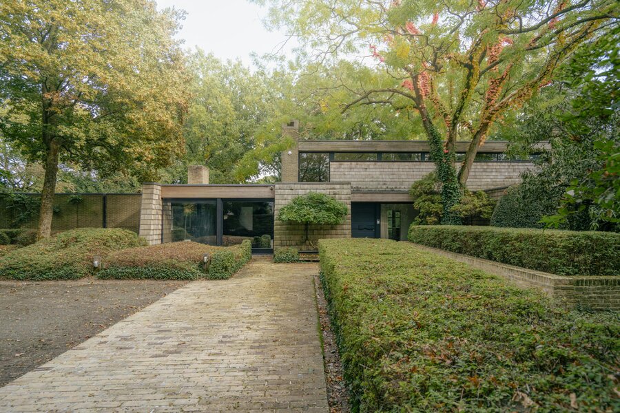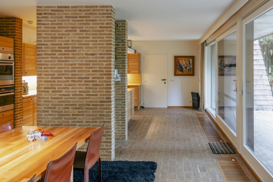 Nabij het centrum van het landelijke Meulebeke, deelgemeente van Tielt, vinden we deze villa terug. Dit alleenstaand huis werd in 1974 opgetrokken onder leiding van architect Arthur Degeyter uit Brugge. De kenmerken van deze invloedrijke Belgische architect, komen ook hier volledig tot zijn recht. Een harmonieuze integratie van architectuur, interieur en omgeving, met aandacht voor verhoudingen, materialiteit en lichtinval. En laat dit laatste nu ook hier dé blikvanger zijn. Dankzij de vele connectie met de omliggende tuin, valt er in ieder hoekje van deze woning een aangenaam natuurlijk licht binnen waardoor je hier een rustgevende sfeer creëert.