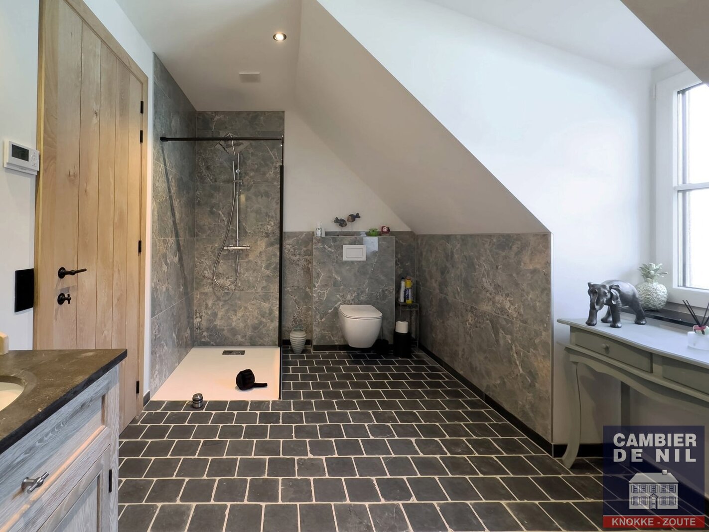 1e verdieping: 3 slaapkamers en 1 volledig uitgeruste badkamer (ligbad, douche, lavabo en toilet). De gebruiksdoeleinden van de kamers zijn divers en kunnen ingericht worden als dressing of kantoorruimte. Volledig geïsoleerde zolder.