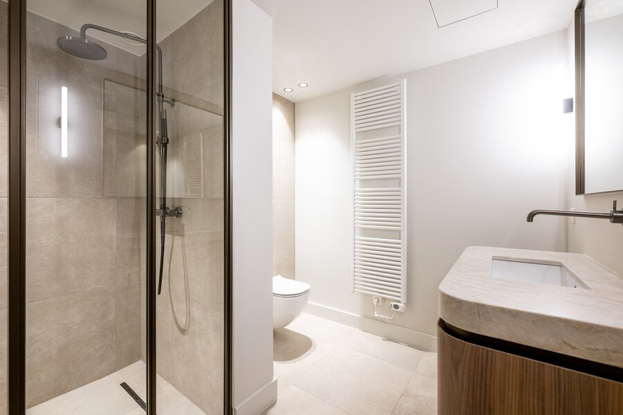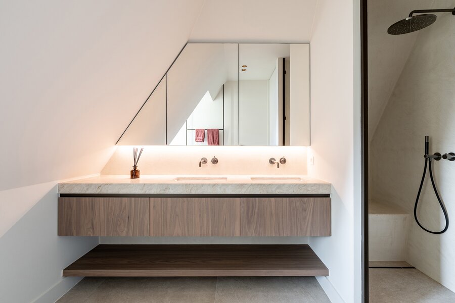 Op de -1 bevindt zich de 3de kamer met vloerraam en ingemaakte kasten, een badkamer met douche en wc.