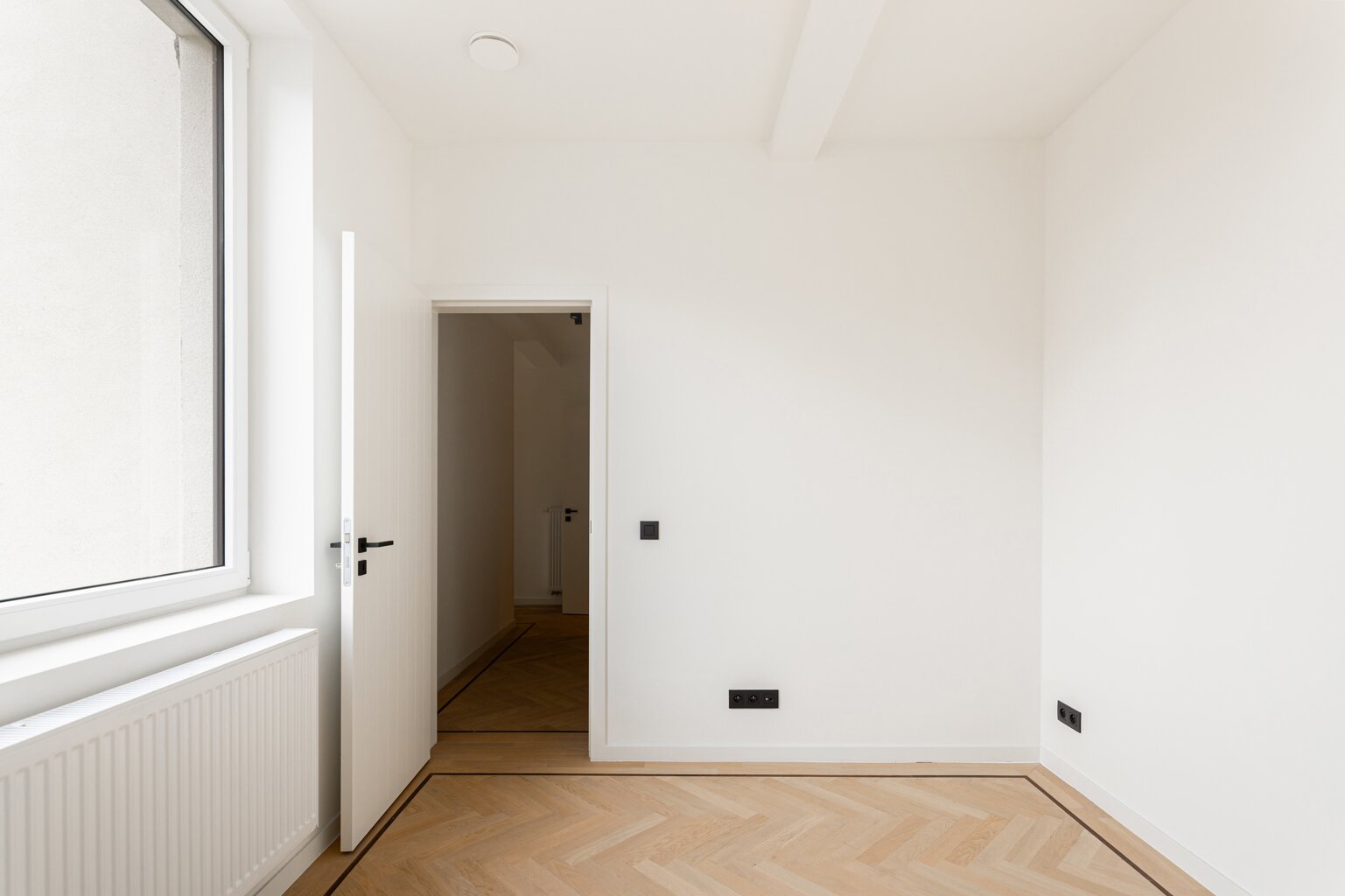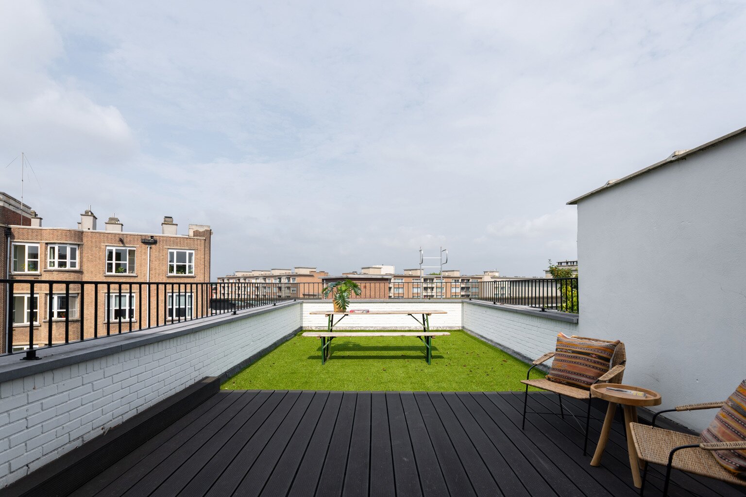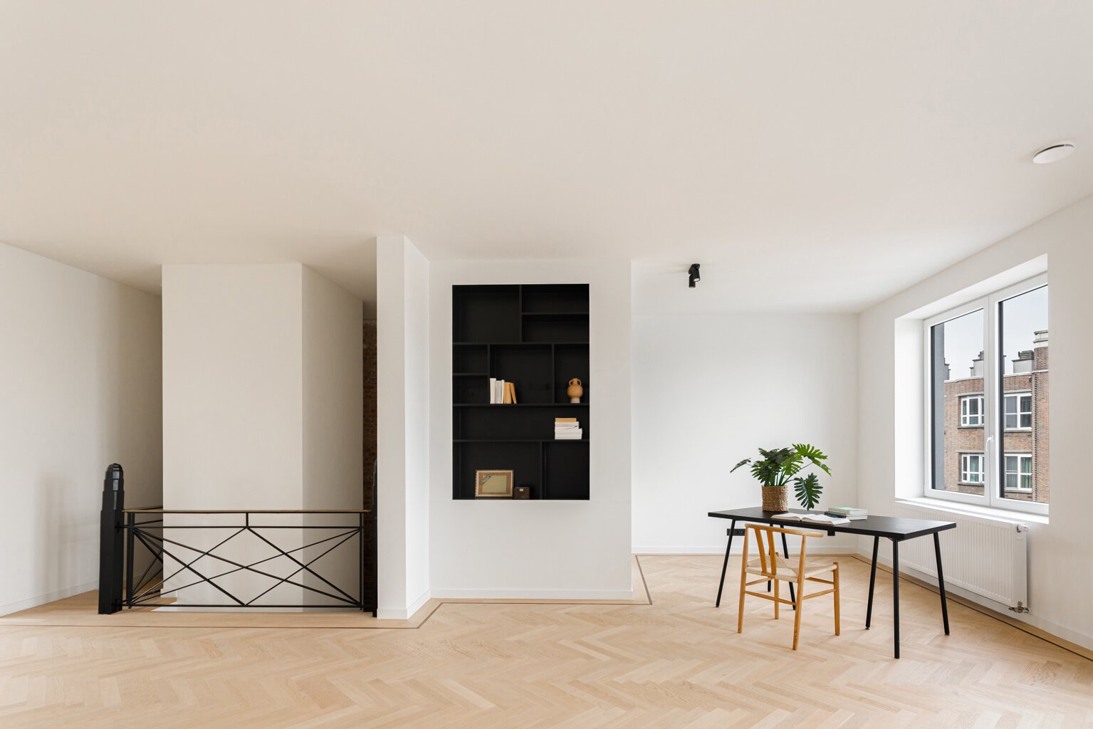 Ontdek dit unieke duplexappartement in een prachtig art decopand uit 1937. Een statig pièce unique, nog maar nét gerenoveerd en energetisch in topvorm gebracht, met veel oog voor detail. Geniet van de mooi bewaarde authentieke elementen, zoals de houten trap, gecombineerd met modern comfort, een nieuwe lift, geavanceerd ventilatiesysteem type D, energetische afwerking volgens de huidige isolatienormen en EPC A. De hoge ramen zorgen voor een overvloed aan natuurlijk licht. Dankzij de serene kleurkeuze en eenvormigheid in materialen nodigt deze plek uit tot ontspannen, en op het zonnige dakterras word je helemáál instant zen.