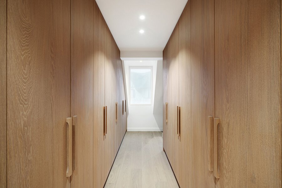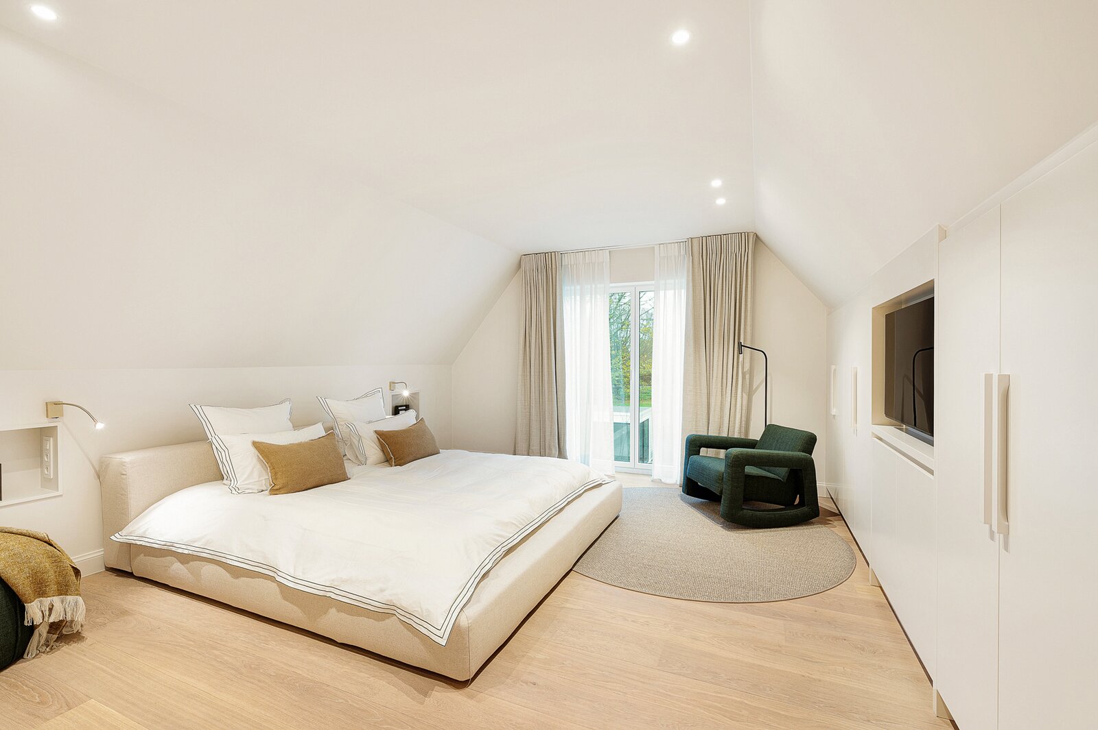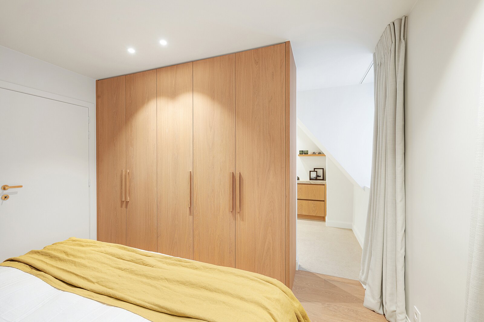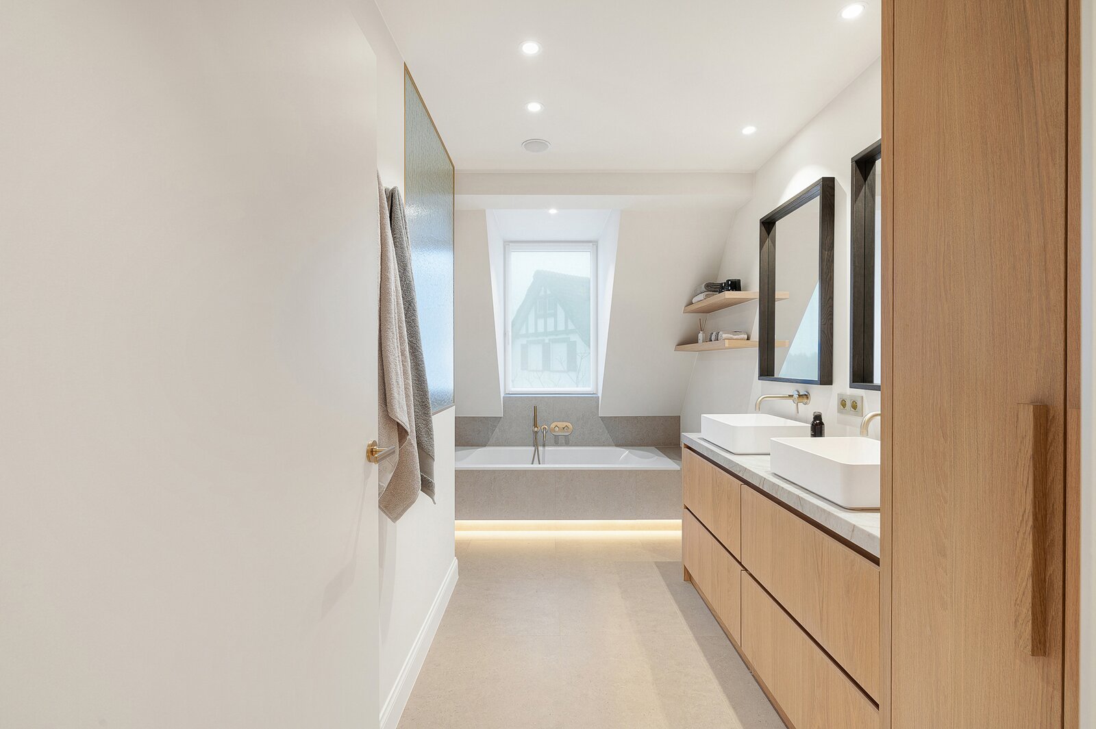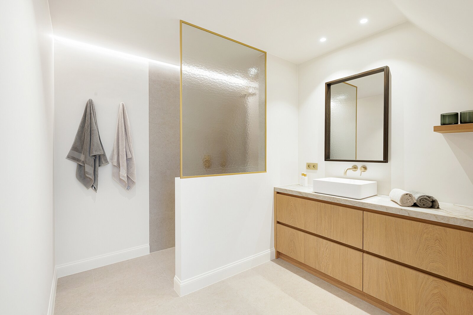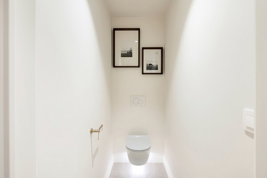 De woning werd hoogwaardig vernieuwd en afgewerkt volgens de hoogste normen, met een sterke focus op licht, ruimte en kwaliteit. Een elegante inkomhal met gastentoilet en uitgebreide maatwerkvestiaire leidt naar de leefruimtes, die dankzij grote raampartijen en minimal windows baden in natuurlijk licht en een mooi zicht bieden op de zuidwestgerichte tuin. De leefruimte omvat een stijlvolle zithoek met gashaard en maatwerk tv-wand in fineer eik, een aparte eetruimte en een volledig uitgeruste designkeuken met hoogwaardige Miele-toestellen en wijnkoeler.