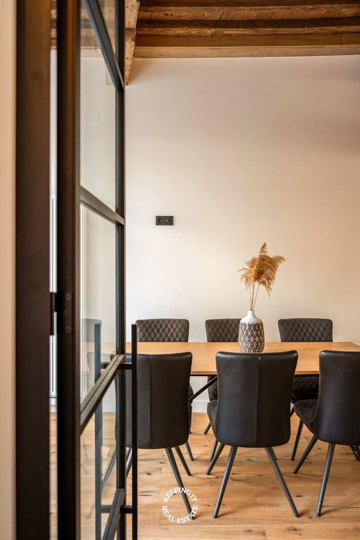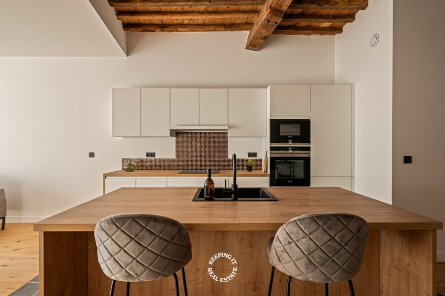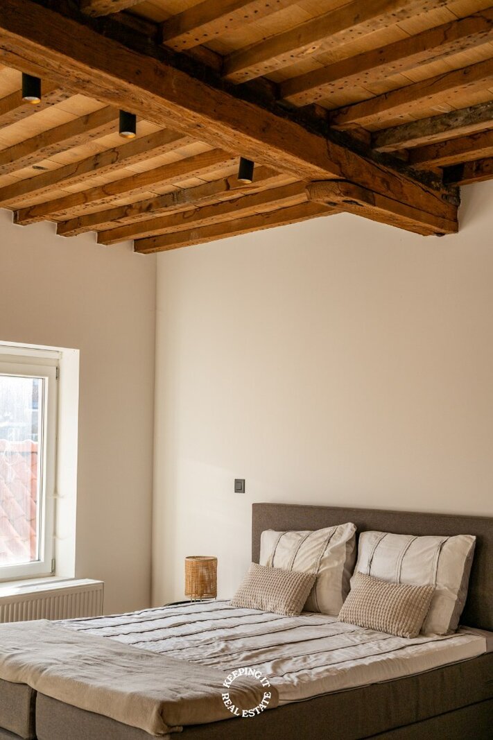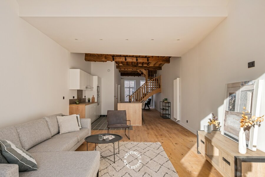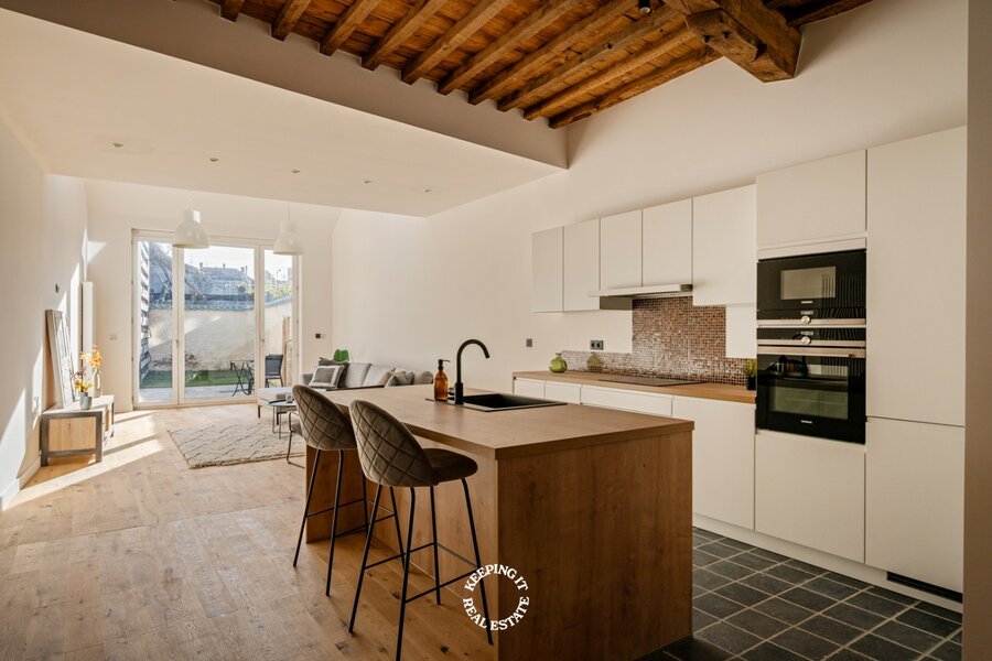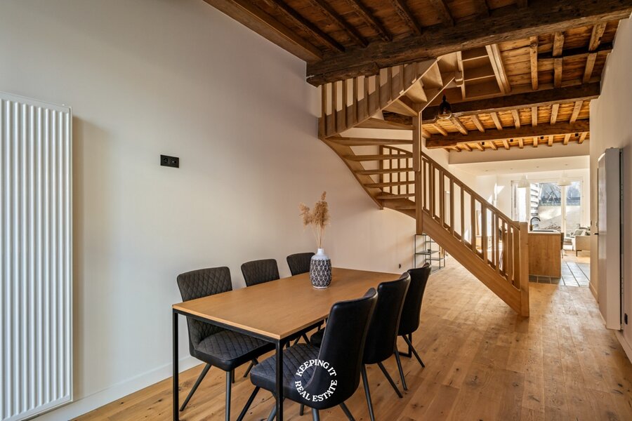 Daar de woning een totale renovatie is ondergaan geniet u hier van alle hedendaags comfort, zonder in te boeten aan authentiek karakter. Op ieder niveau werd de plafondhoogte gemaximaliseerd met behoud van de authentieke moer- en kinderbalken. Met een gunstig EPC-label B is deze woning niet alleen mooi, maar ook energiezuinig.