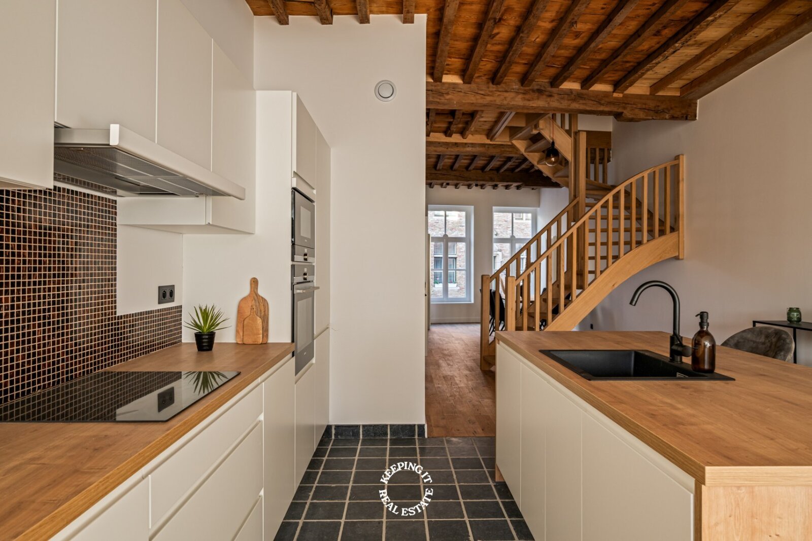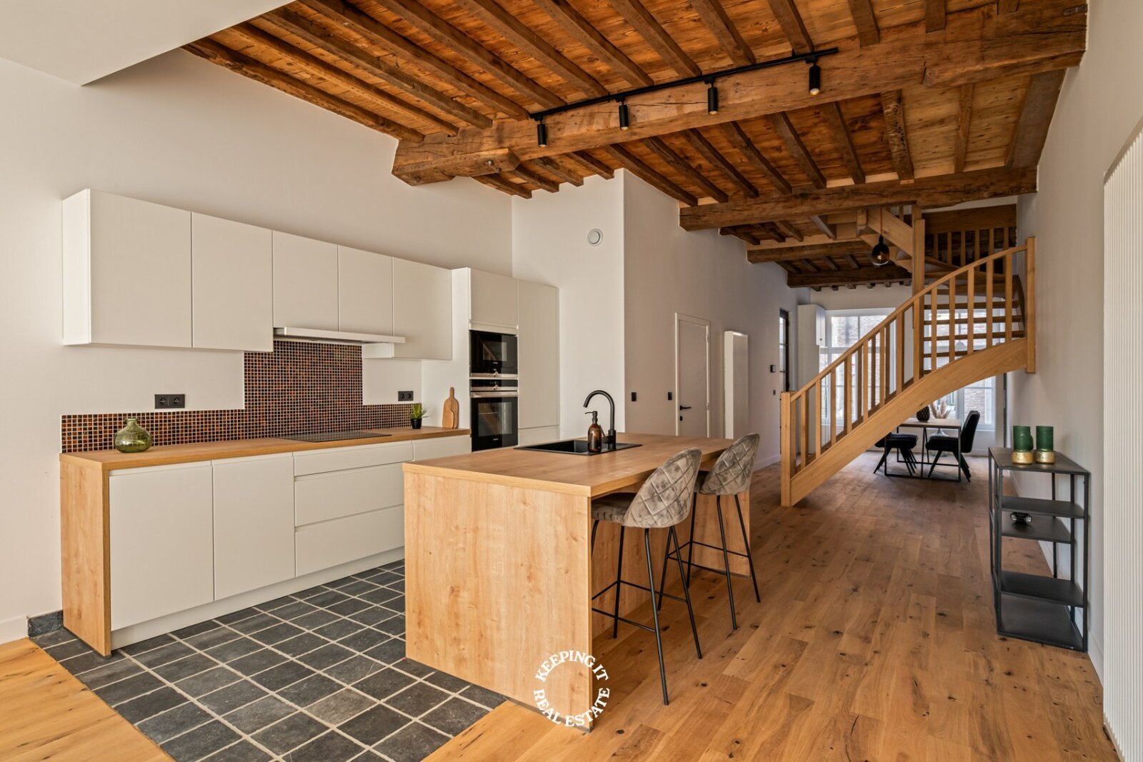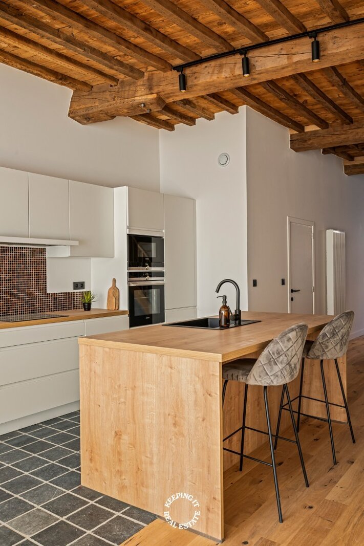 Daar de woning een totale renovatie is ondergaan geniet u hier van alle hedendaags comfort, zonder in te boeten aan authentiek karakter. Op ieder niveau werd de plafondhoogte gemaximaliseerd met behoud van de authentieke moer- en kinderbalken. Met een gunstig EPC-label B is deze woning niet alleen mooi, maar ook energiezuinig.