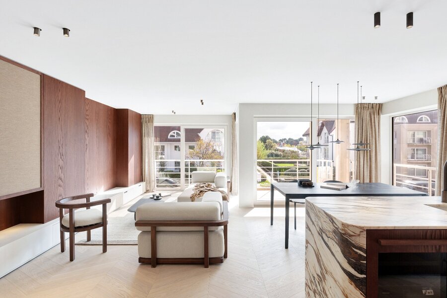 Impressionant hoekappartement in een exclusieve villaresidentie in het hart van het Zoute.