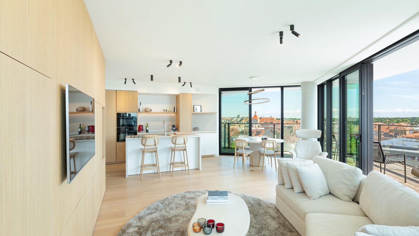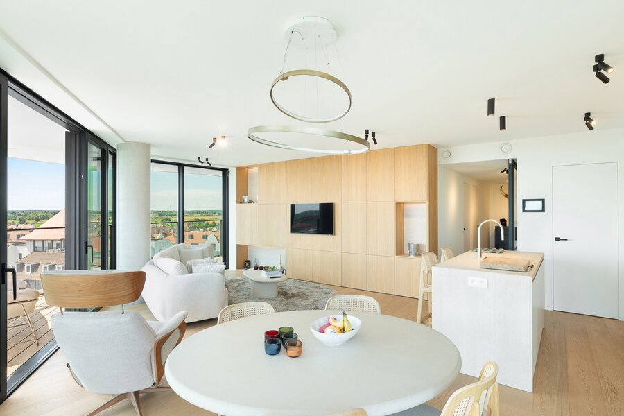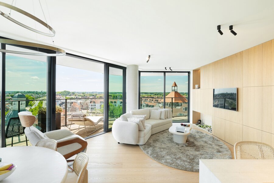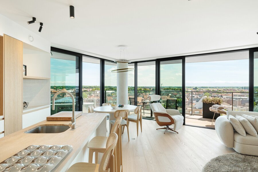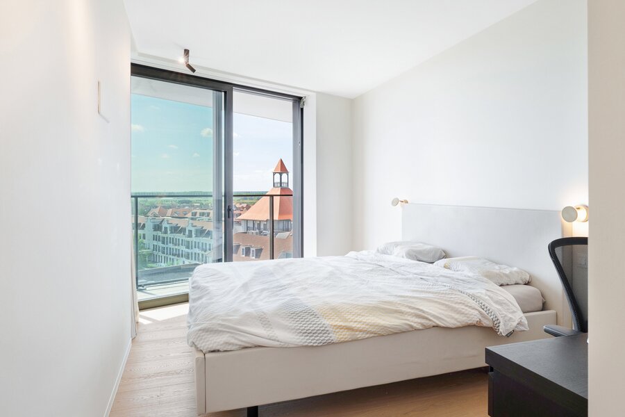 Uitzonderlijk nieuwbouwappartement met 2 slaapkamers, gelegen op de 6de verdieping van de residentie The Tower - Lake District. Samenstelling: inkomhal met vestiaire en apart gastentoilet. Zeer ruime woon- en eetkamer met unieke vergezichten en uitgevend op groot terras. Volledig ingerichte open keuken. Praktische berging met aansluiting voor was- en droogkast. Hoofdslaapkamer met aanpalende douchekamer. 2de slaapkamer. Beide slaapkamers hebben eveneens toegang tot het terras. Mogelijkheid tot aankoop van een garagebox in de residentie. Bezoek graag na afspraak via één van onze kantoren. Interessante investering!