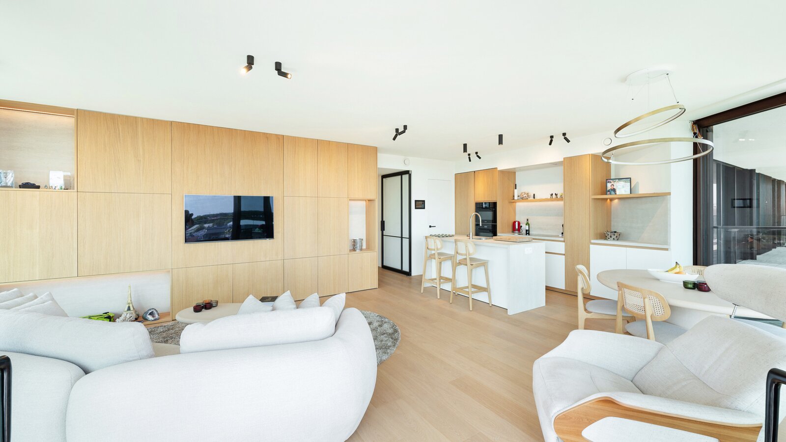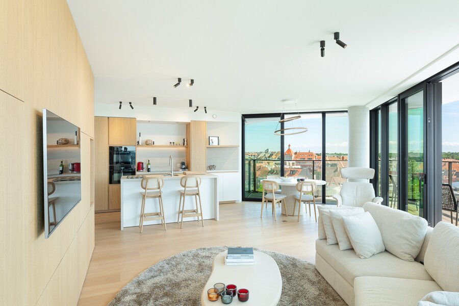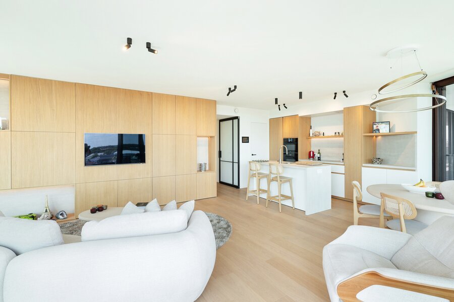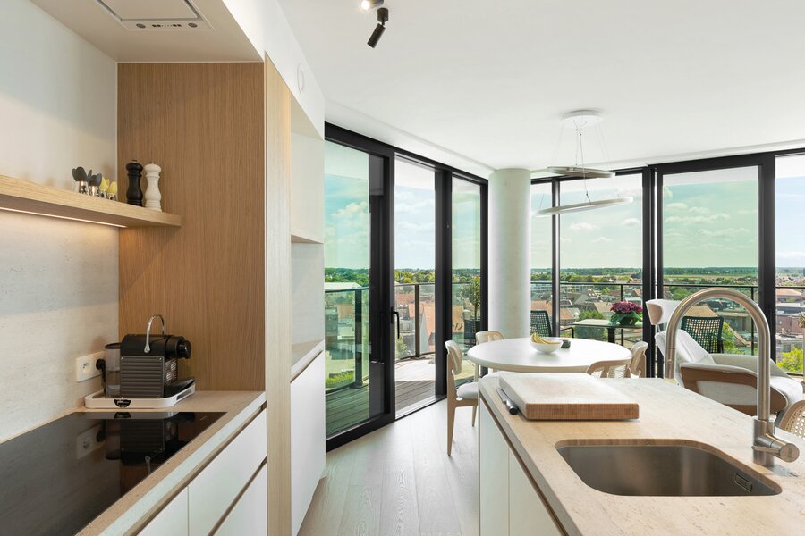 Uitzonderlijk nieuwbouwappartement met 2 slaapkamers, gelegen op de 6de verdieping van de residentie The Tower - Lake District. Samenstelling: inkomhal met vestiaire en apart gastentoilet. Zeer ruime woon- en eetkamer met unieke vergezichten en uitgevend op groot terras. Volledig ingerichte open keuken. Praktische berging met aansluiting voor was- en droogkast. Hoofdslaapkamer met aanpalende douchekamer. 2de slaapkamer. Beide slaapkamers hebben eveneens toegang tot het terras. Mogelijkheid tot aankoop van een garagebox in de residentie. Bezoek graag na afspraak via één van onze kantoren. Interessante investering!