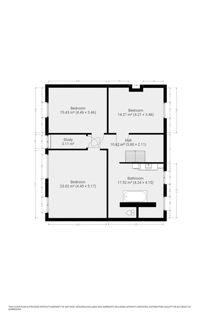 1steV: De eerste verdieping biedt een ruime nachthal, drie slaapkamers (23-15-14m²) en een riante tweede badkamer (18m²) met luxueuze afwerking: een apart toilet, ruim ligbad en inloopdouche. Daarnaast is er een handige bureauruimte van 3 m².
